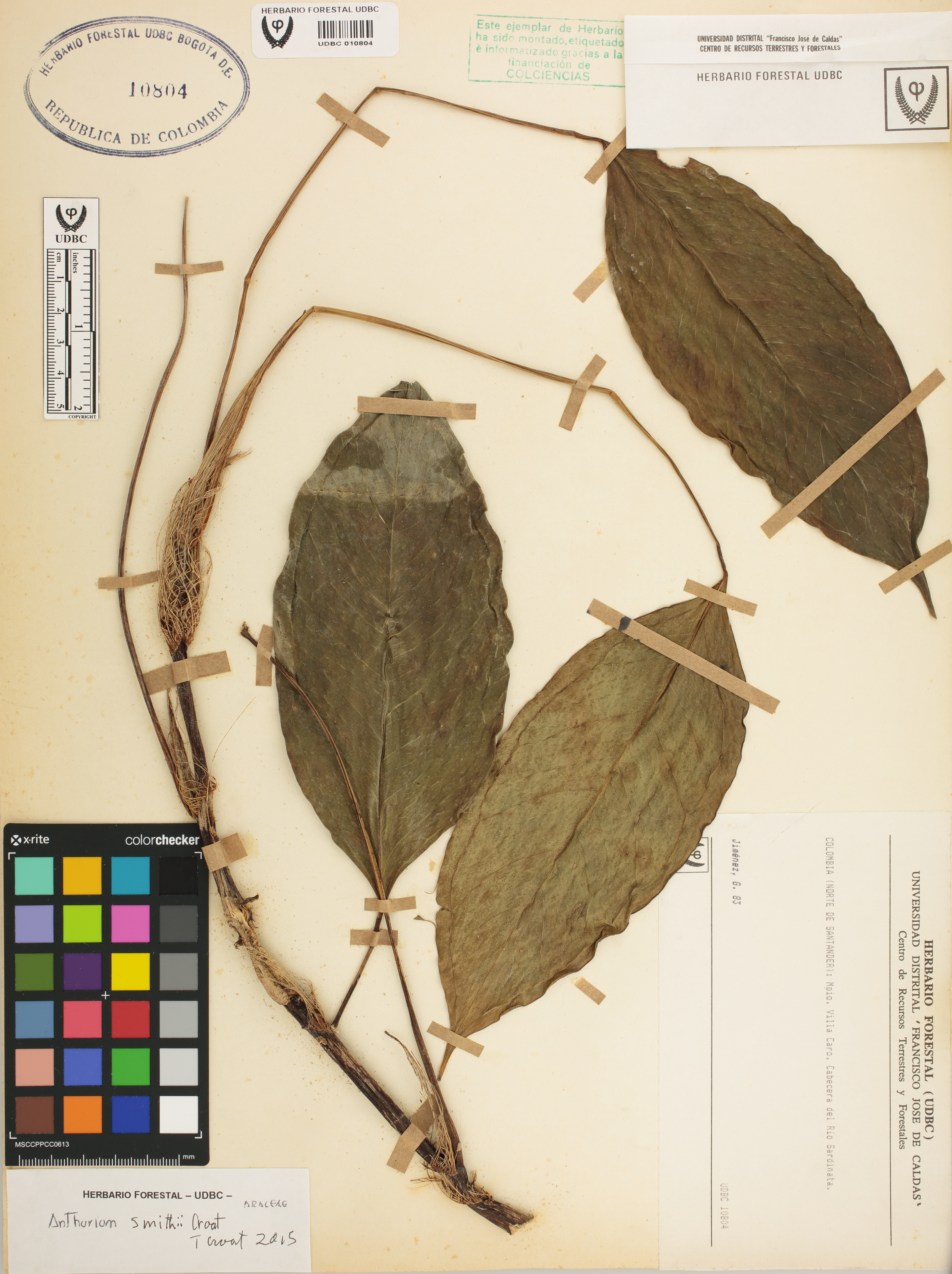 Fotografía del ejemplar Jiménez, G. 83, determinado como Anthurium smithii en el año 2015