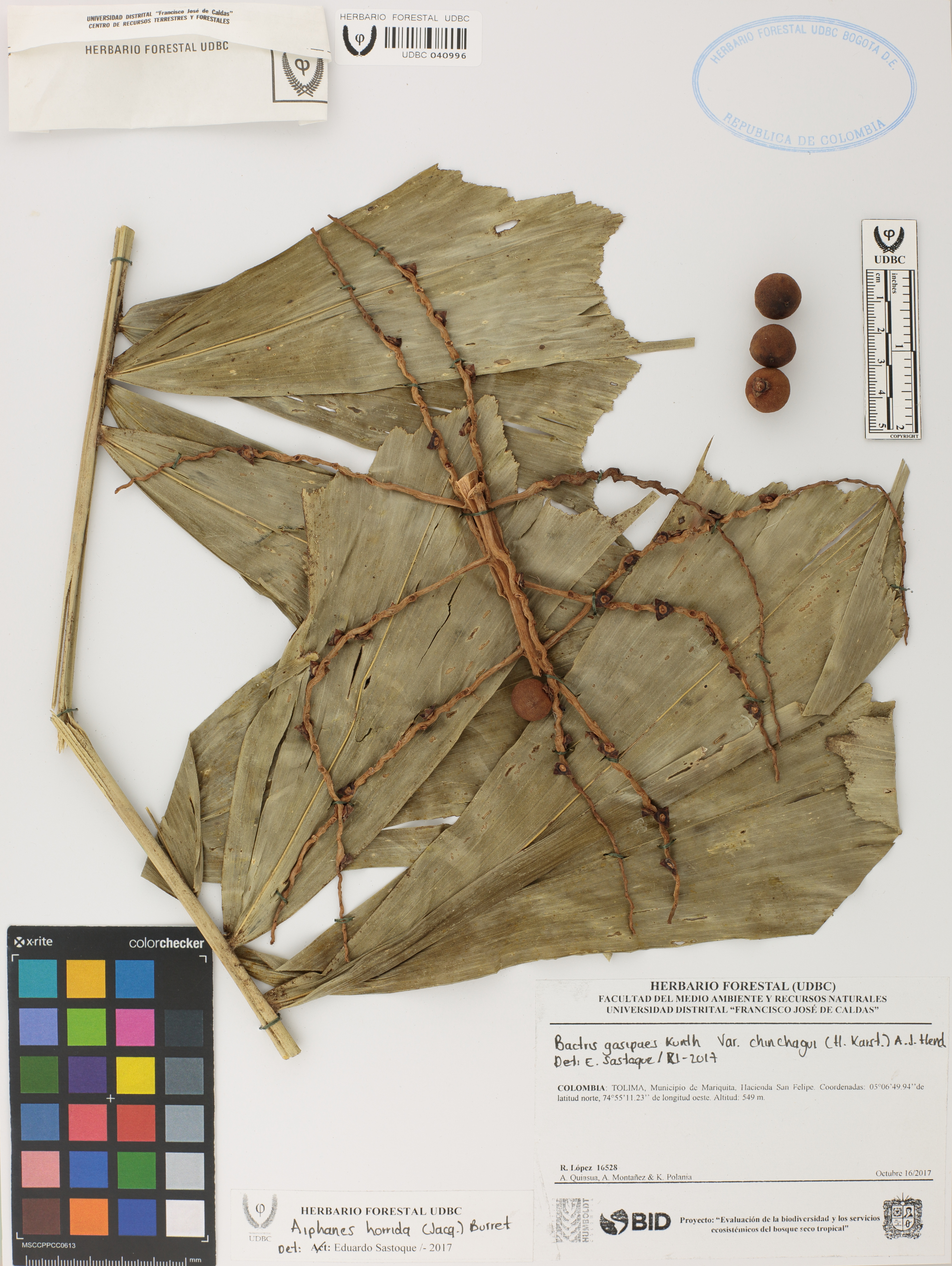Fotografía del ejemplar López, R. 16528, determinado como Aiphanes horrida en el año 2017