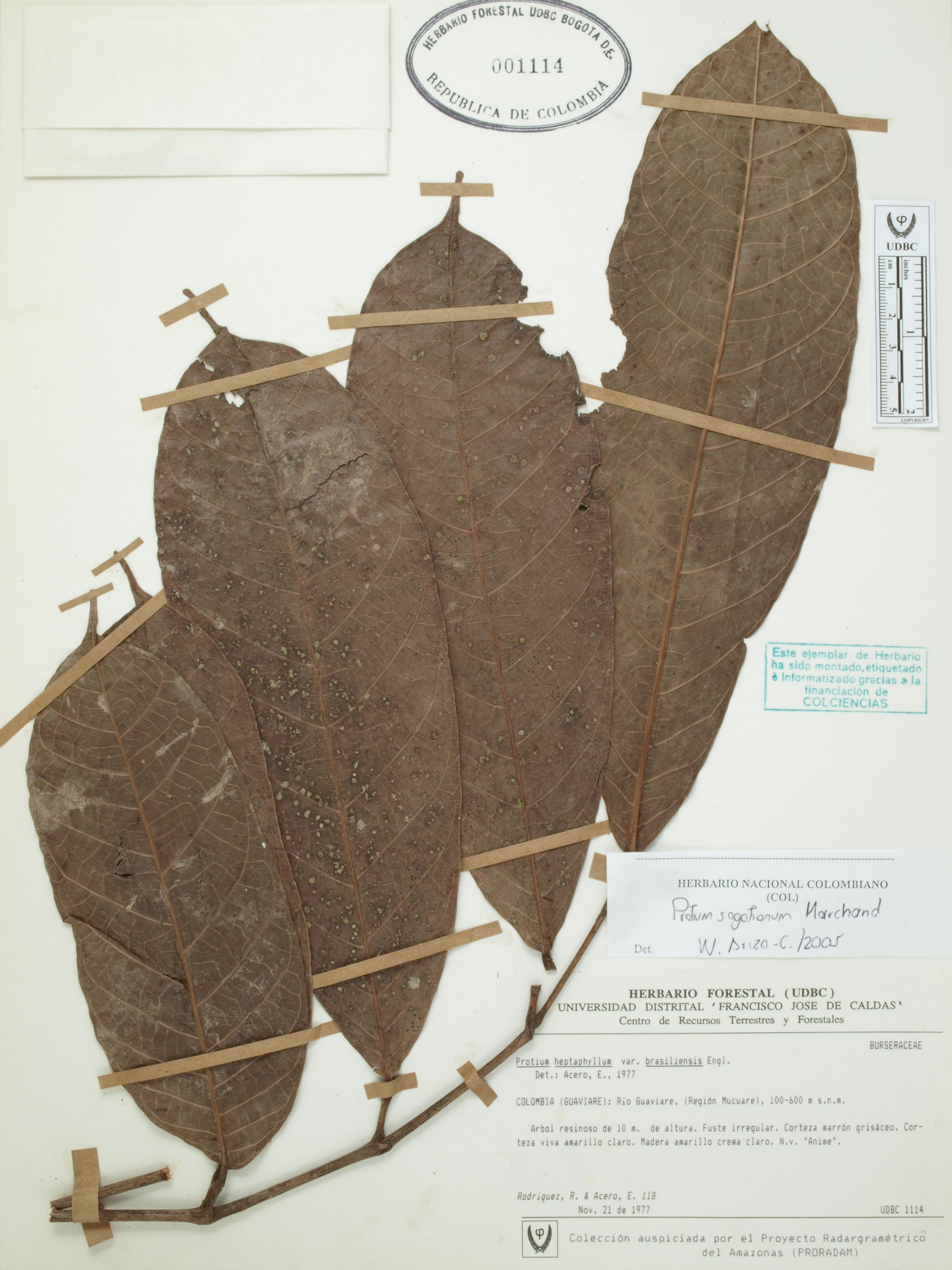 | dc.description | Fotografía del ejemplar Rodríguez, R. 118, determinado como Protium sagotianum en el año 2005 | |