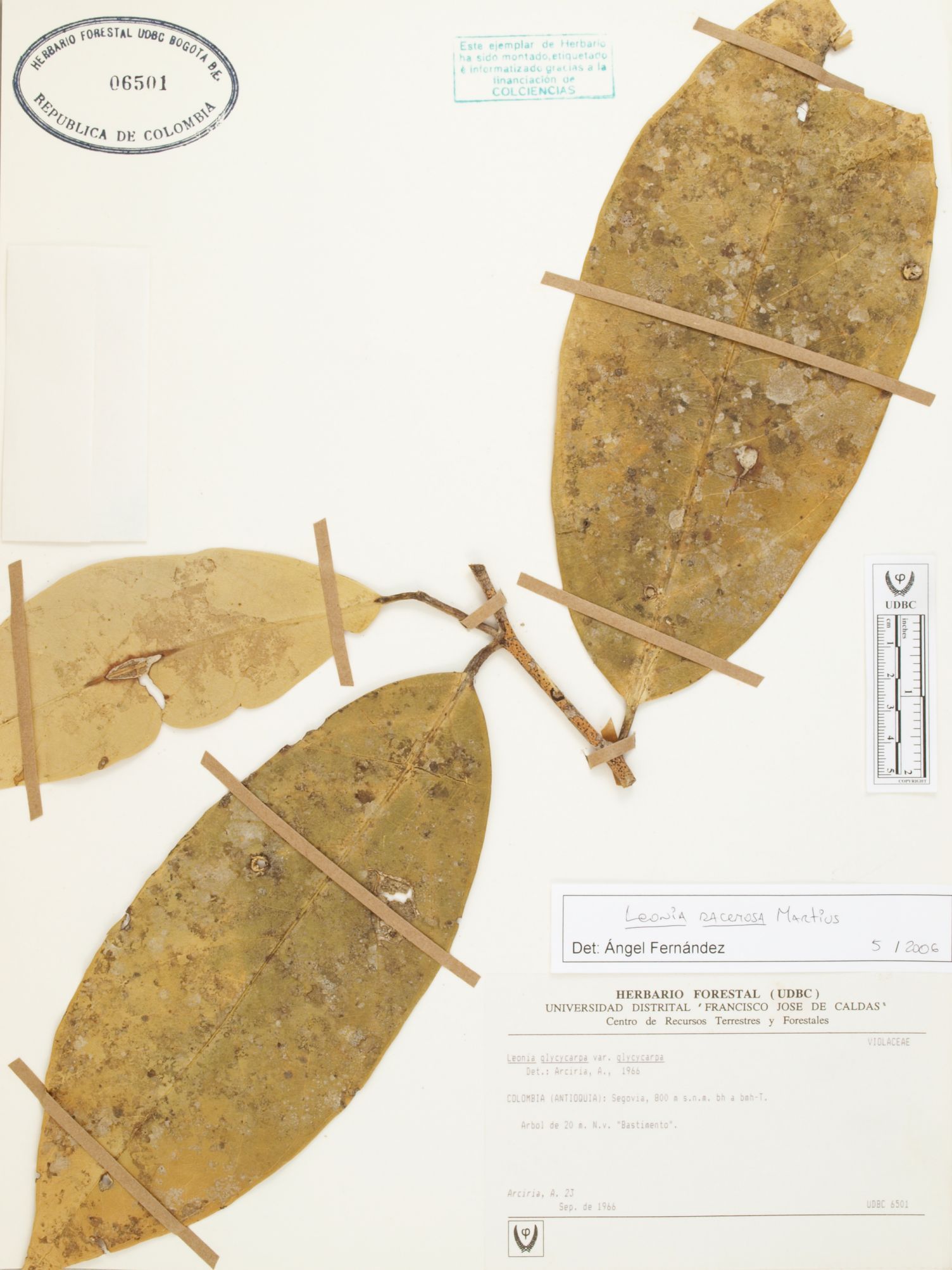 Fotografía del ejemplar Arciria, A. 23, determinado como Leonia racemosa en el año 2006
