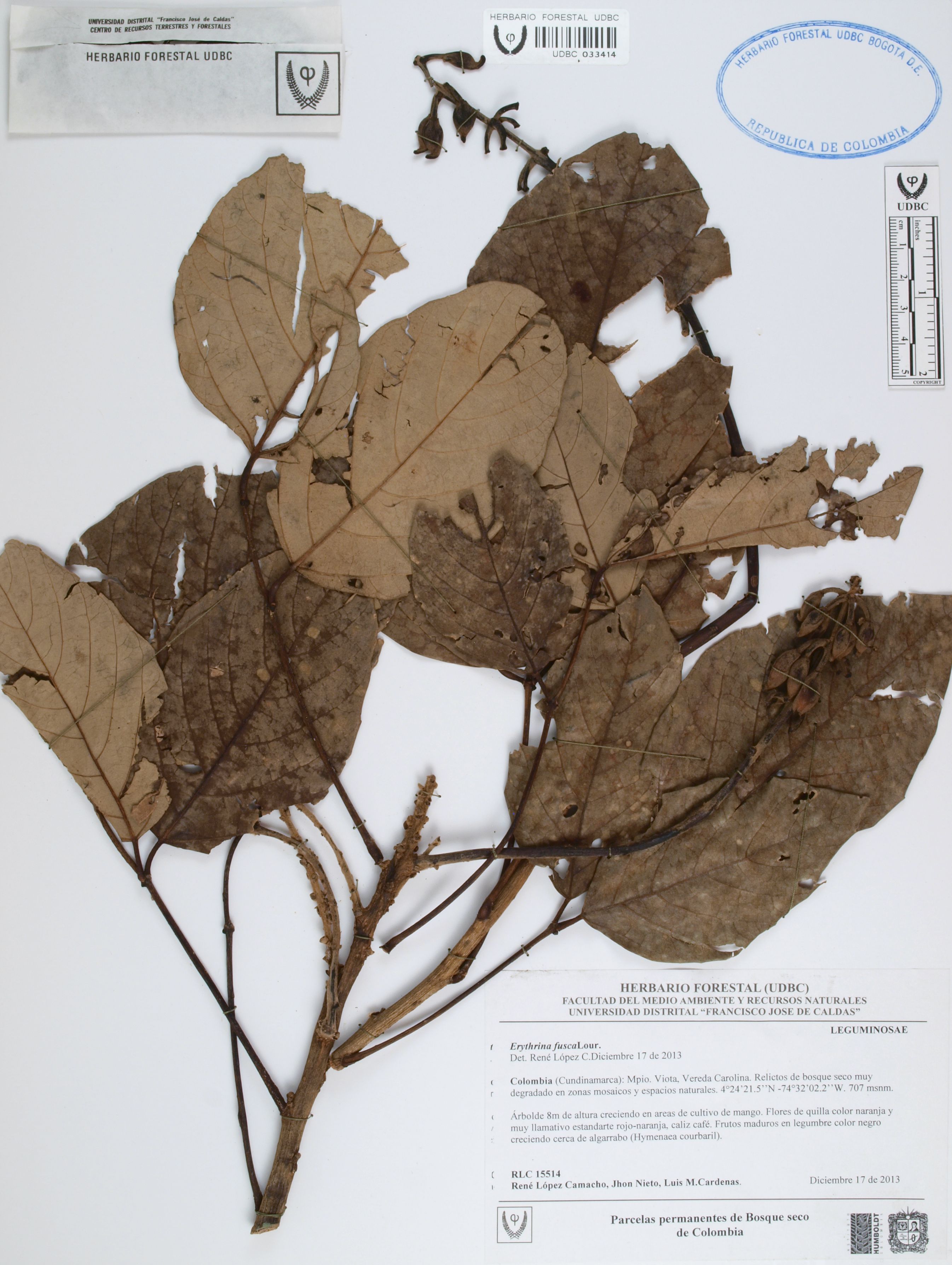 Fotografía del ejemplar López, R. 15514, determinado como Erythrina fusca en el año 2013