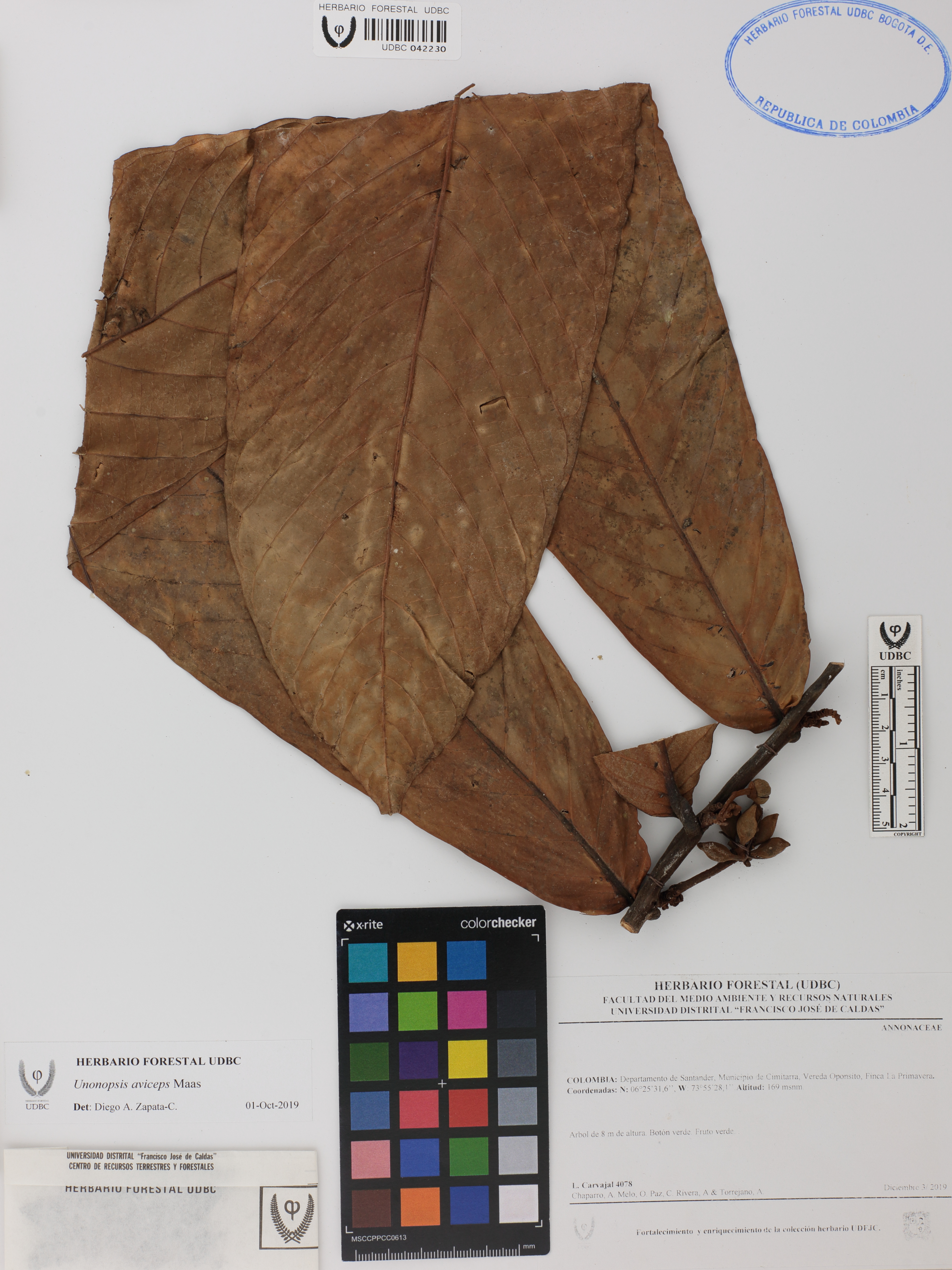 | dc.description | Fotografía del ejemplar Carvajal, L. 4078, determinado como Unonopsis aviceps en el año 2019 | |