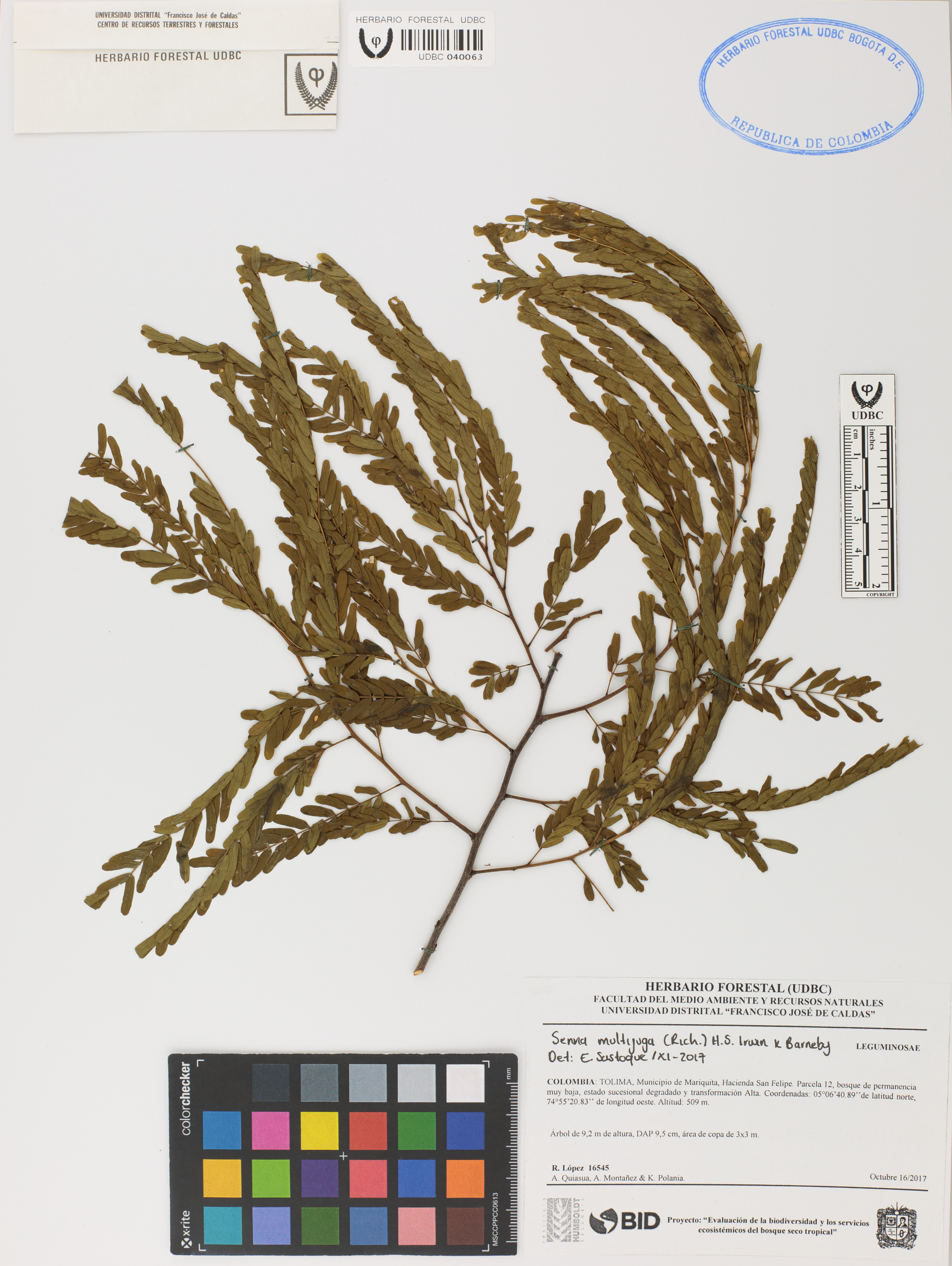 Fotografía del ejemplar López, R. 16545, determinado como Senna multijuga en el año 2017