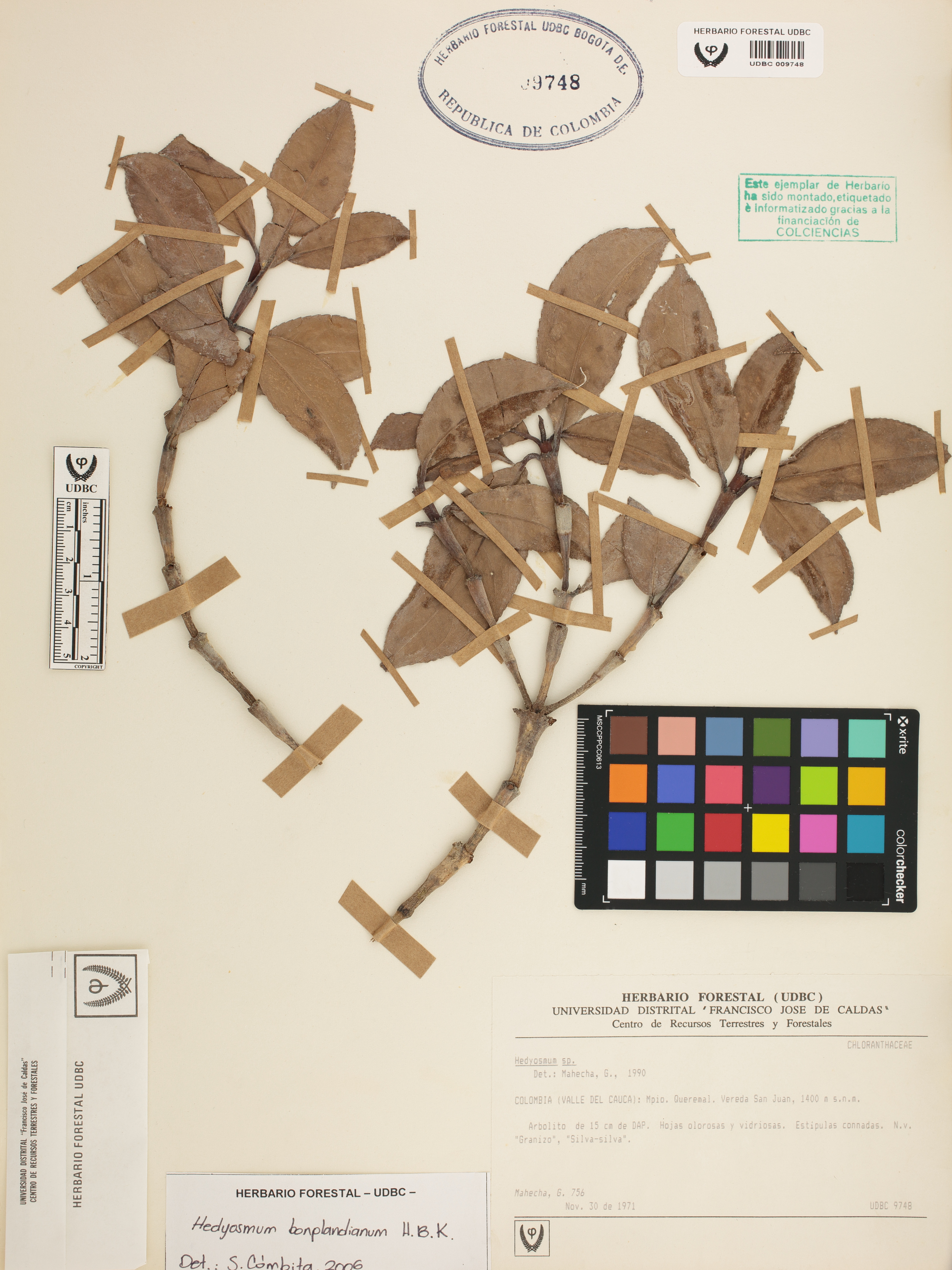 Fotografía del ejemplar Mahecha, G. 756, determinado como Hedyosmum bonplandianum en el año 2006