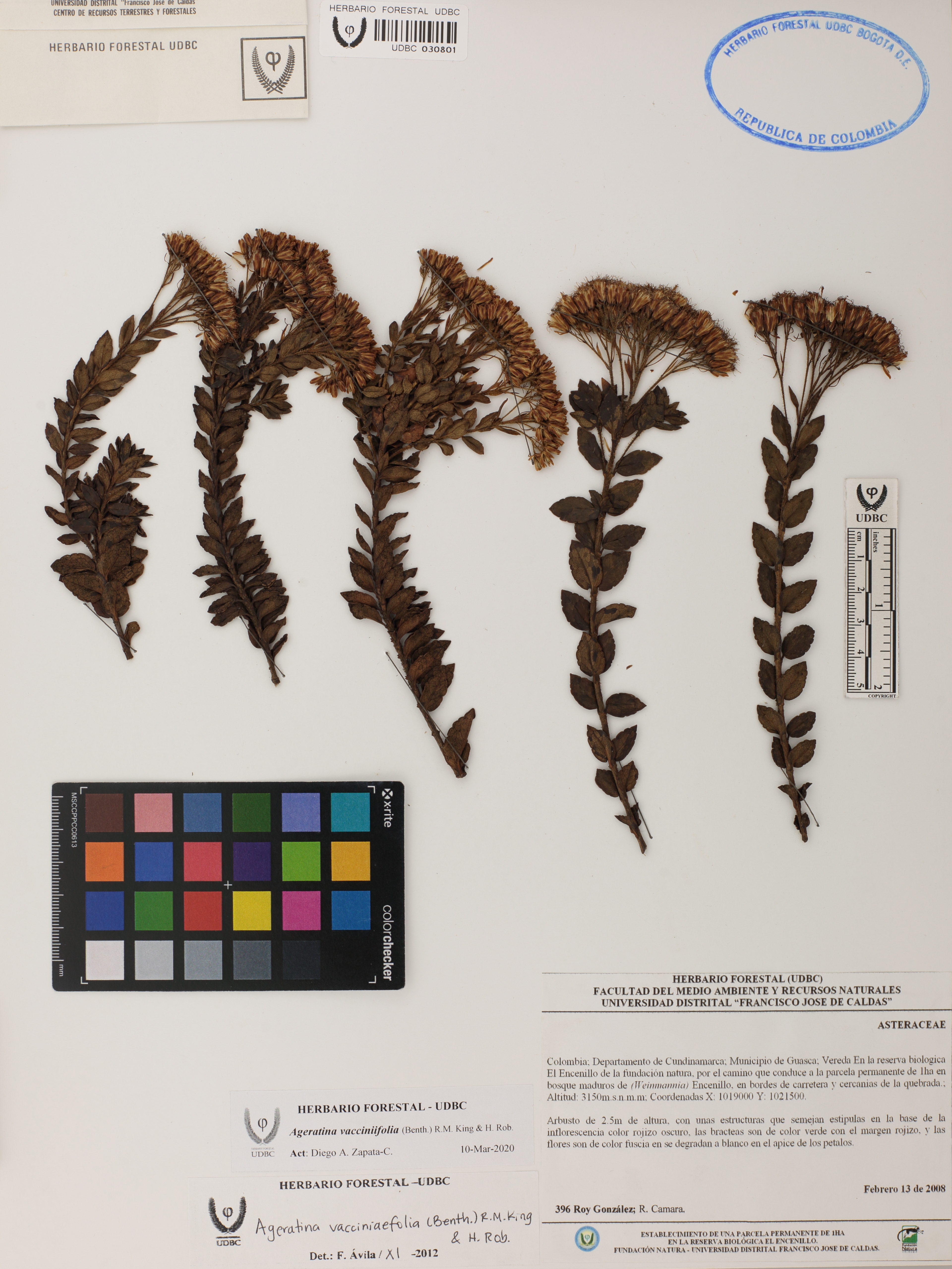 Fotografía del ejemplar González, R. 396, determinado como Ageratina vacciniifolia en el año 2012