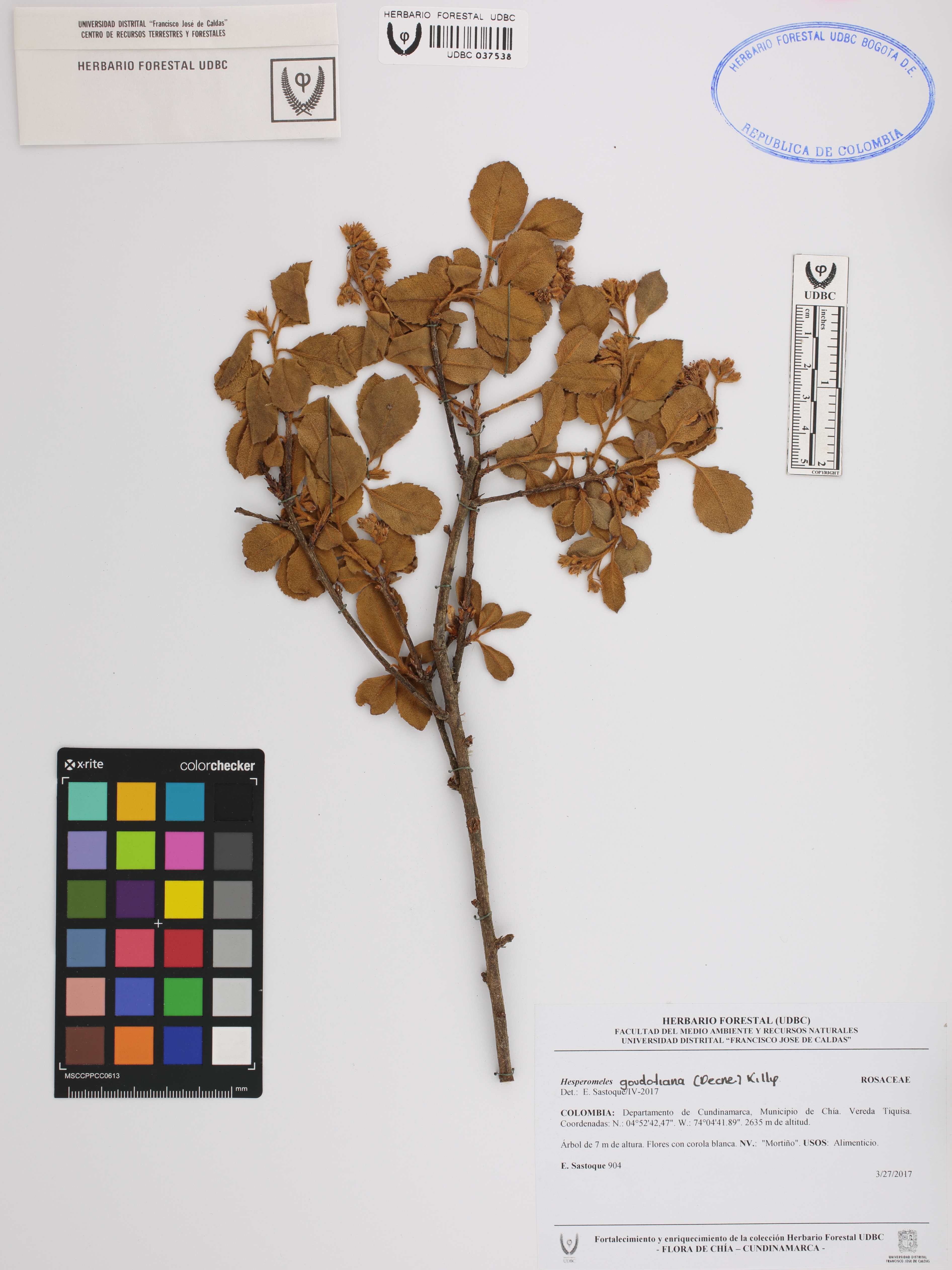 Fotografía del ejemplar Sastoque, E. 904, determinado como Hesperomeles goudotiana en el año 2017