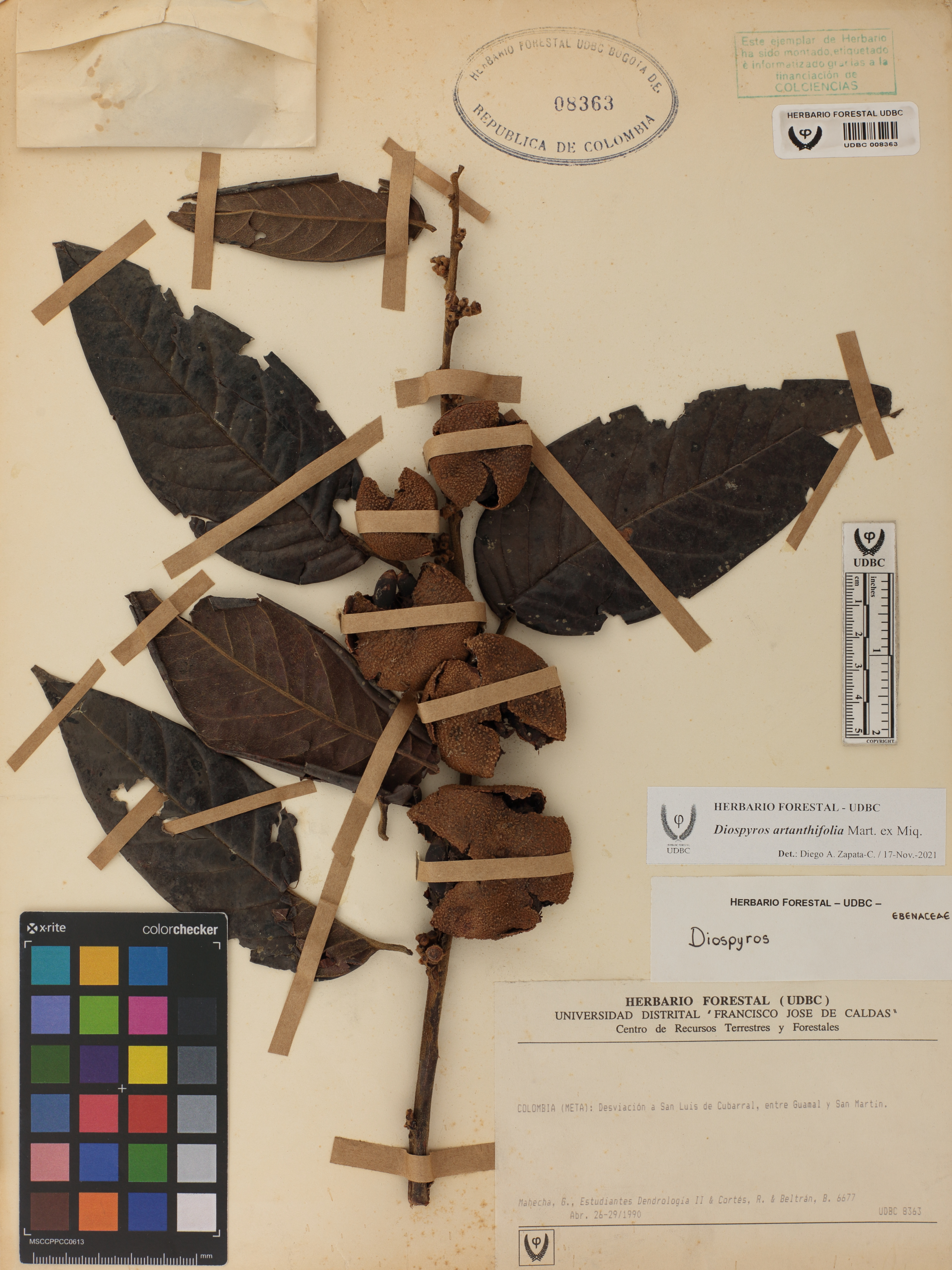Fotografía del ejemplar Mahecha, G. 6677, determinado como Diospyros artanthifolia en el año 2021