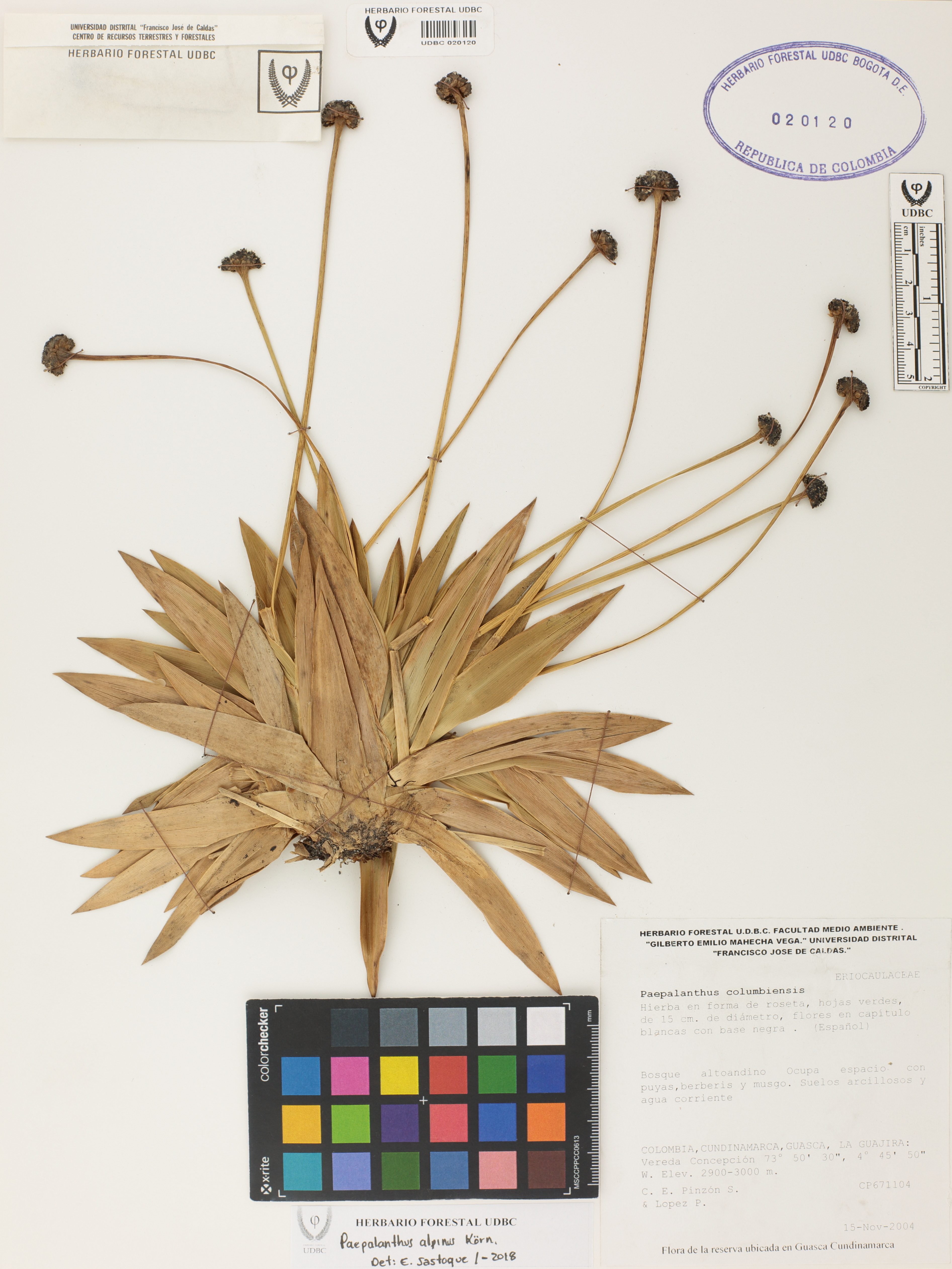 Fotografía del ejemplar Pinzón-S., C. 67, determinado como Paepalanthus alpinus