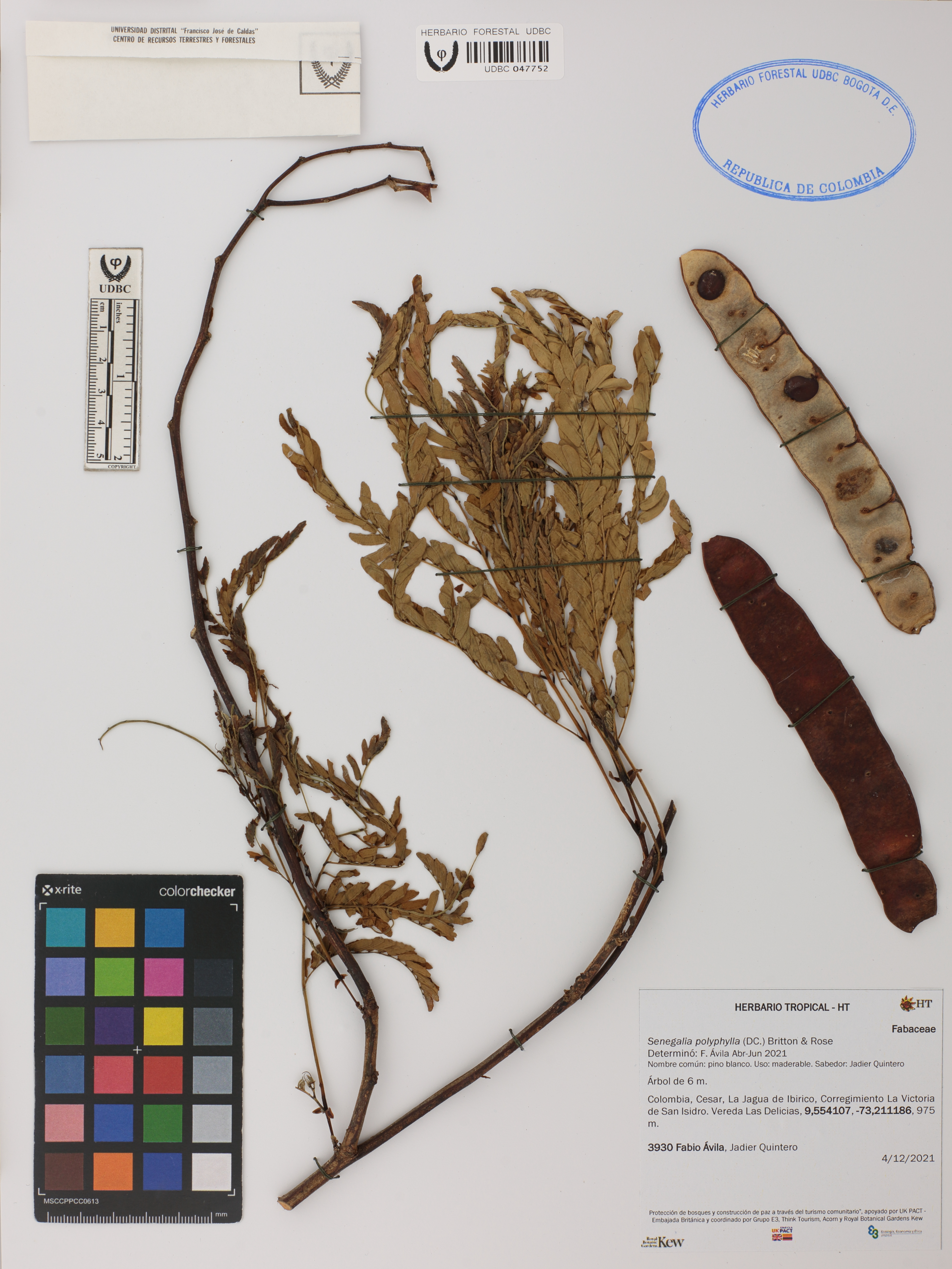 Fotografía del ejemplar Ávila, F. 3930, determinado como Senegalia polyphylla en el año 2022