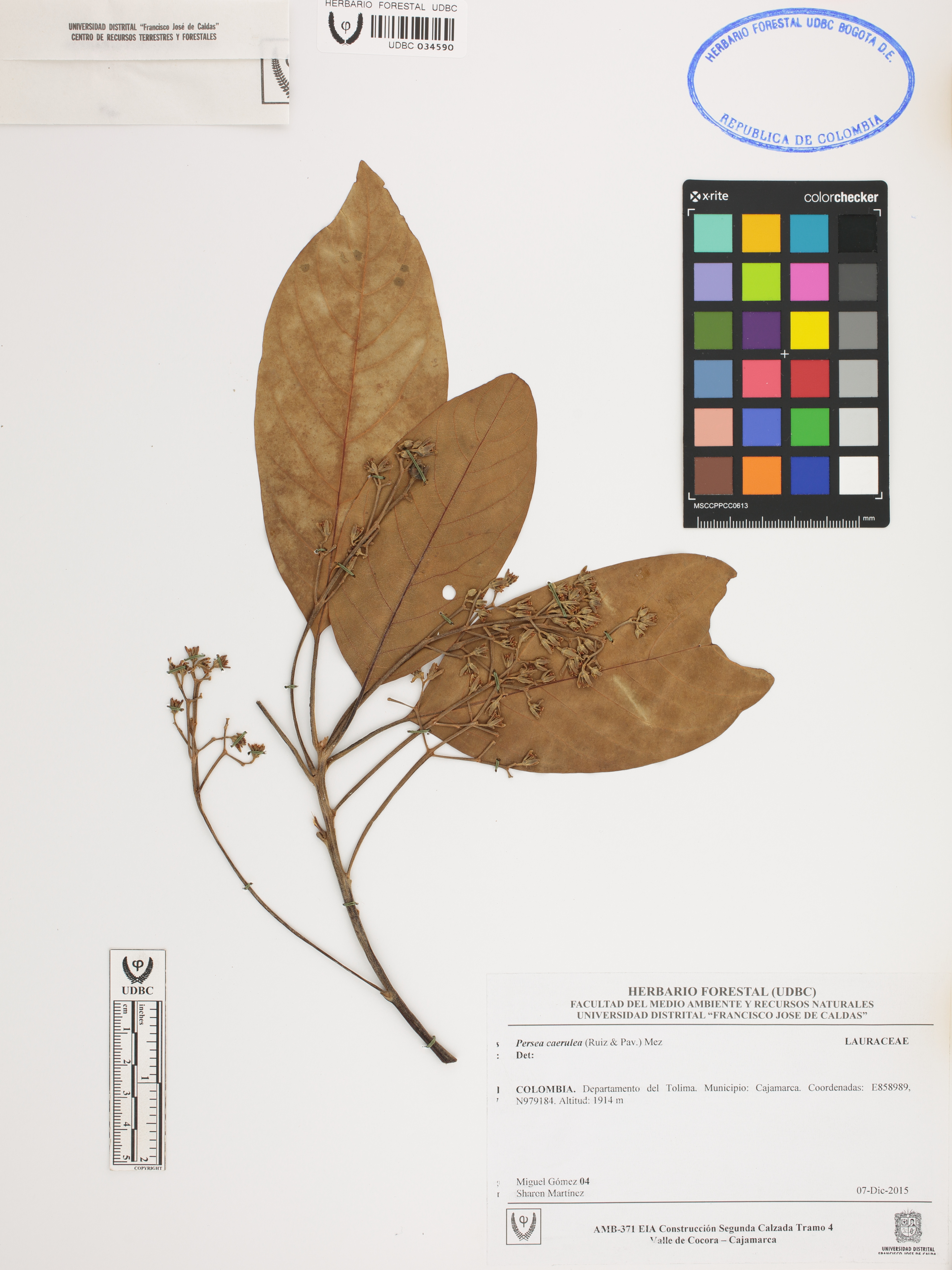 Fotografía del ejemplar Gómez, M. 4, determinado como Persea caerulea