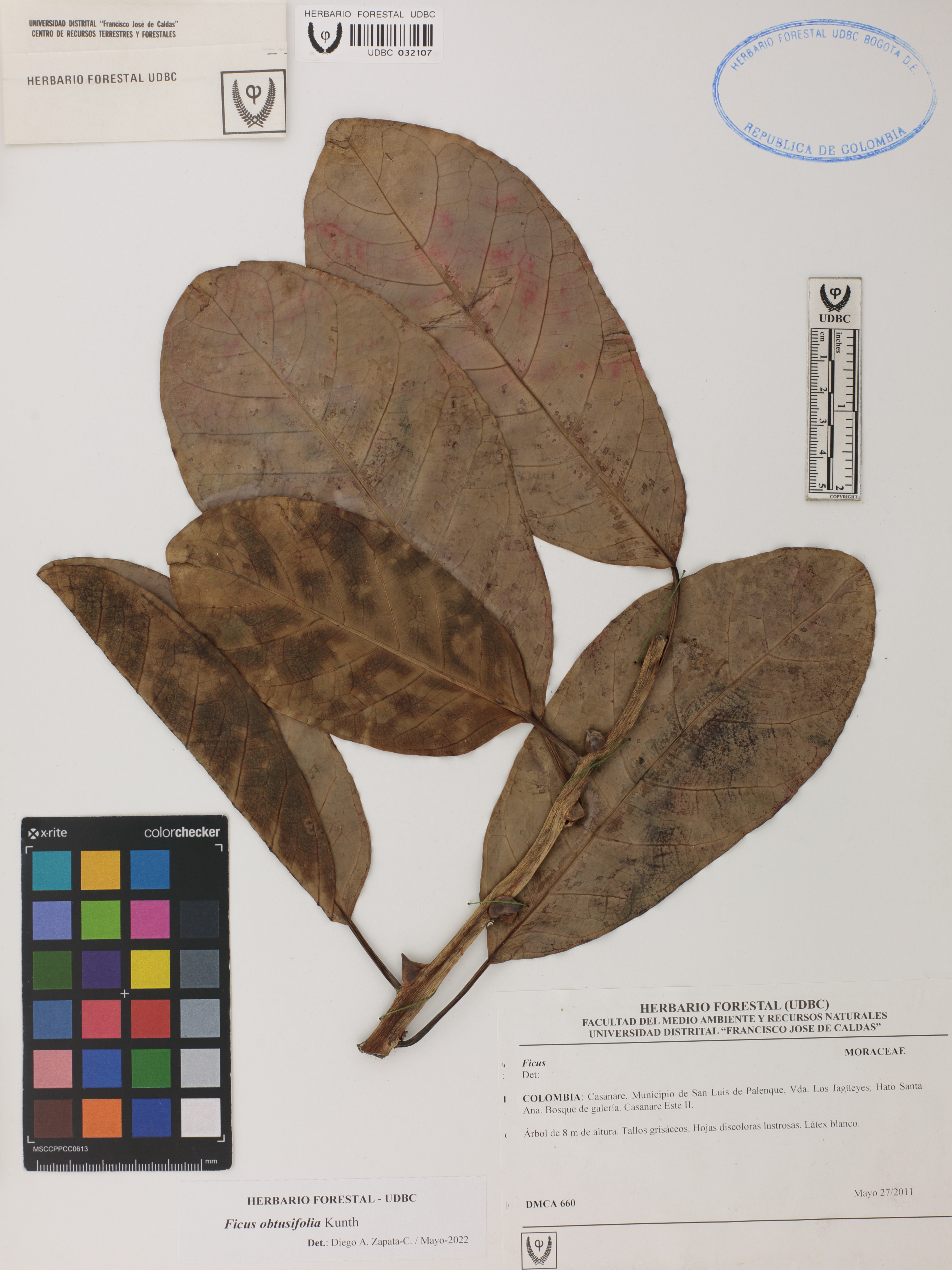 Fotografía del ejemplar SD 660, determinado como Ficus obtusifolia en el año 2022