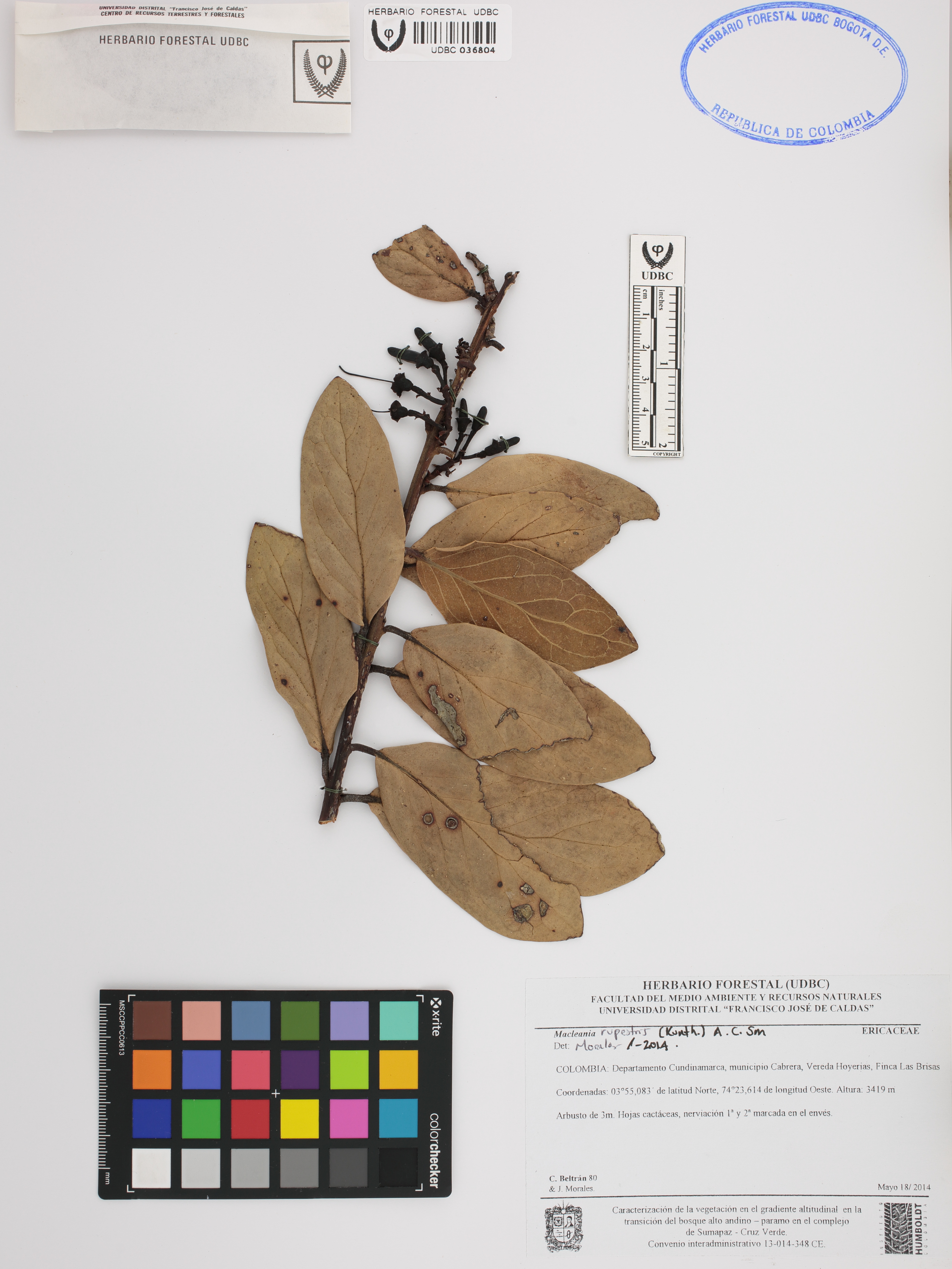 Fotografía del ejemplar Beltrán, C. 80, determinado como Macleania rupestris en el año 2014