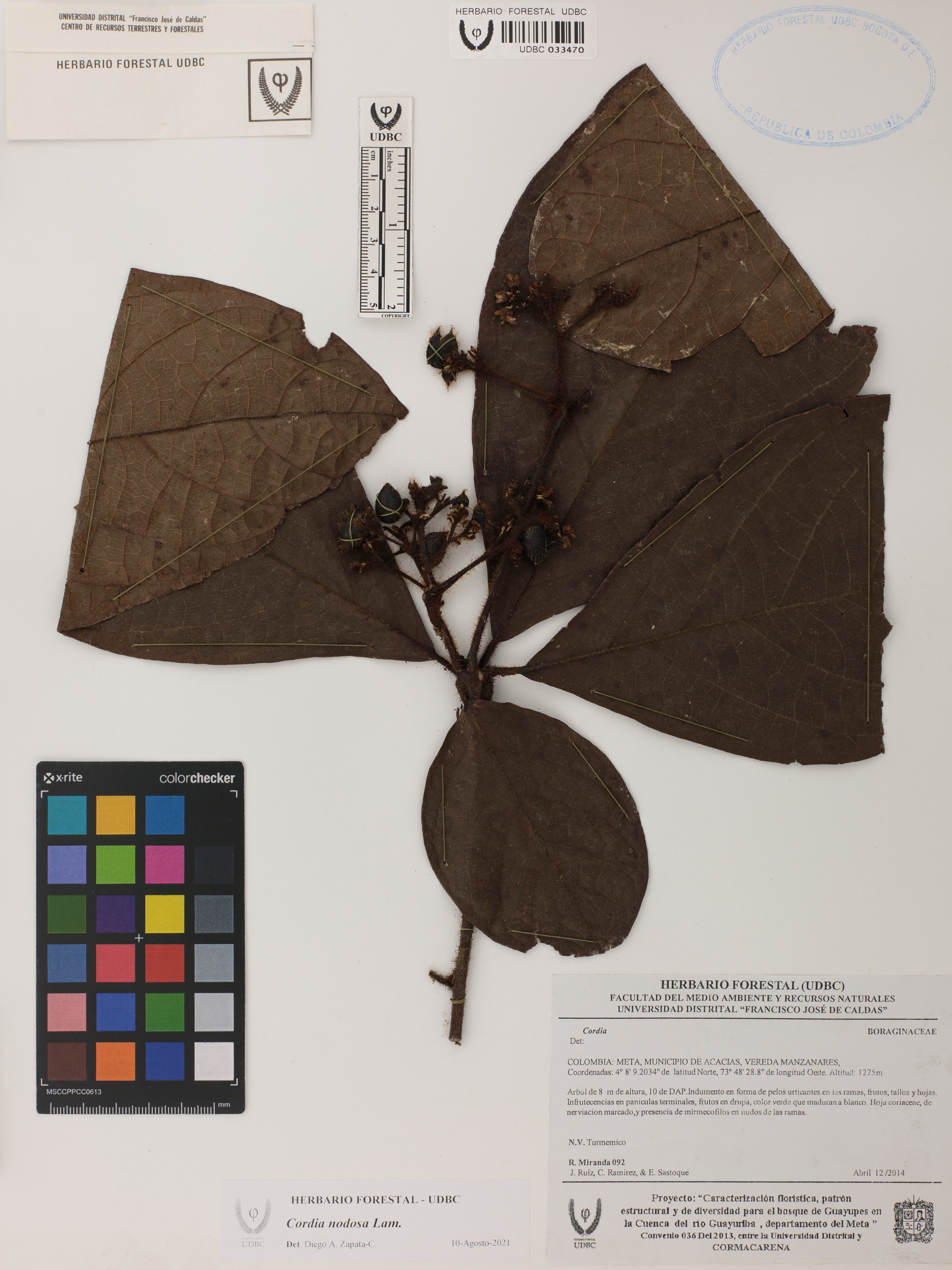 Fotografía del ejemplar Miranda, R. 92, determinado como Cordia nodosa en el año 2021