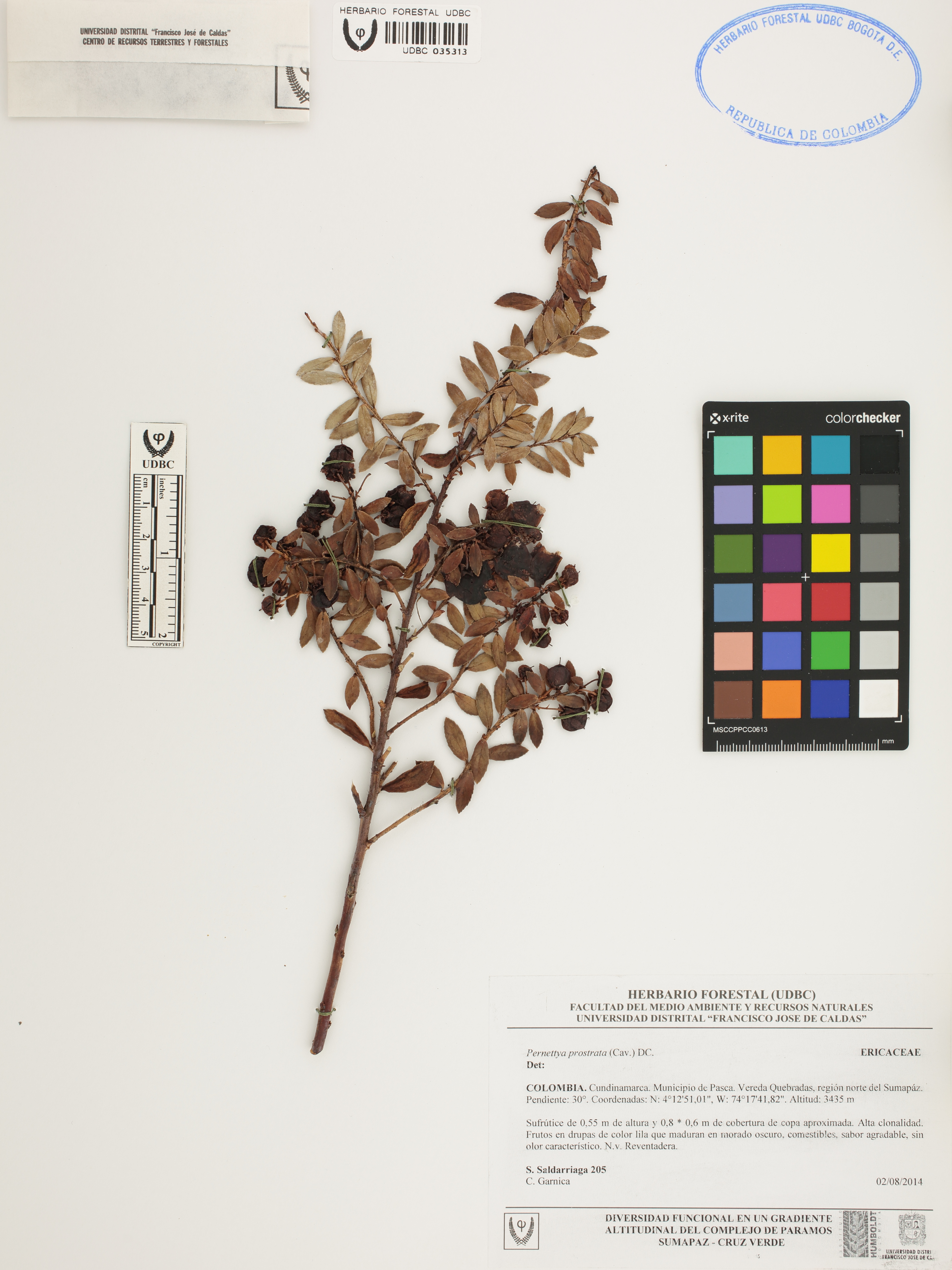 Fotografía del ejemplar Saldarriaga, S. 205, determinado como Pernettya prostrata