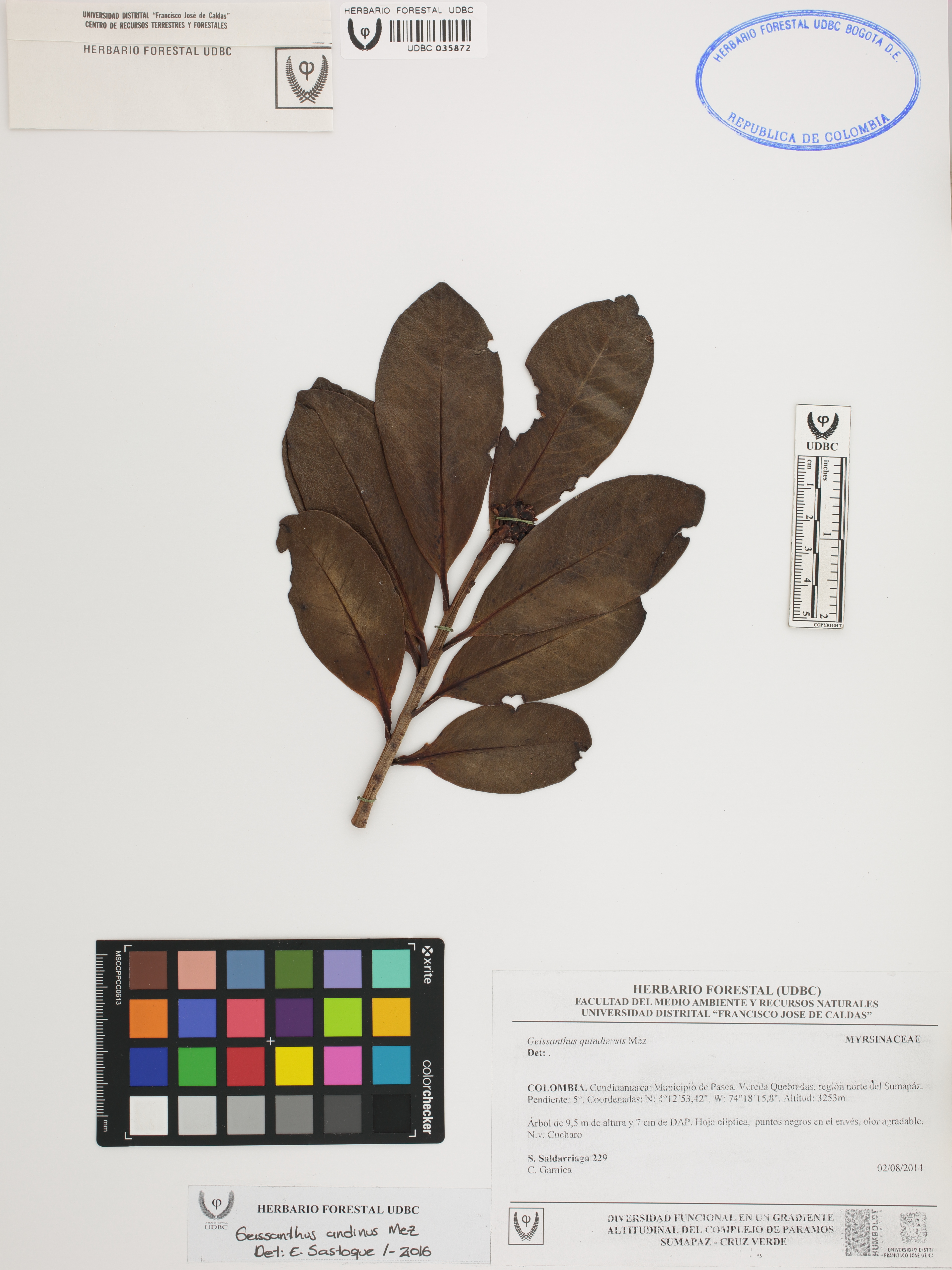 Fotografía del ejemplar Saldarriaga, S. 229, determinado como Geissanthus andinus en el año 2016