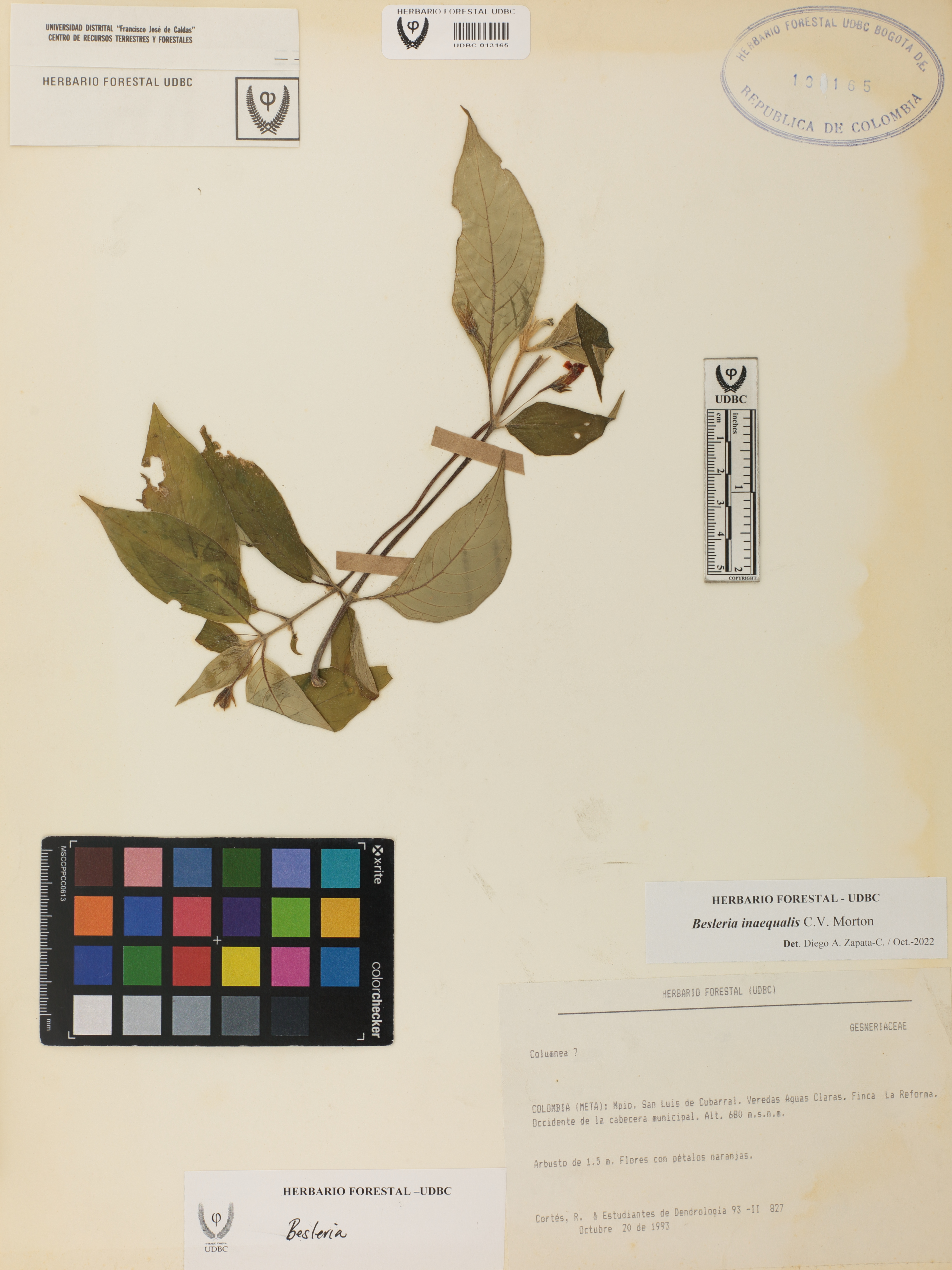 | dc.description | Fotografía del ejemplar Cortés-B., R. 827, determinado como Besleria inaequalis en el año 2022 | |