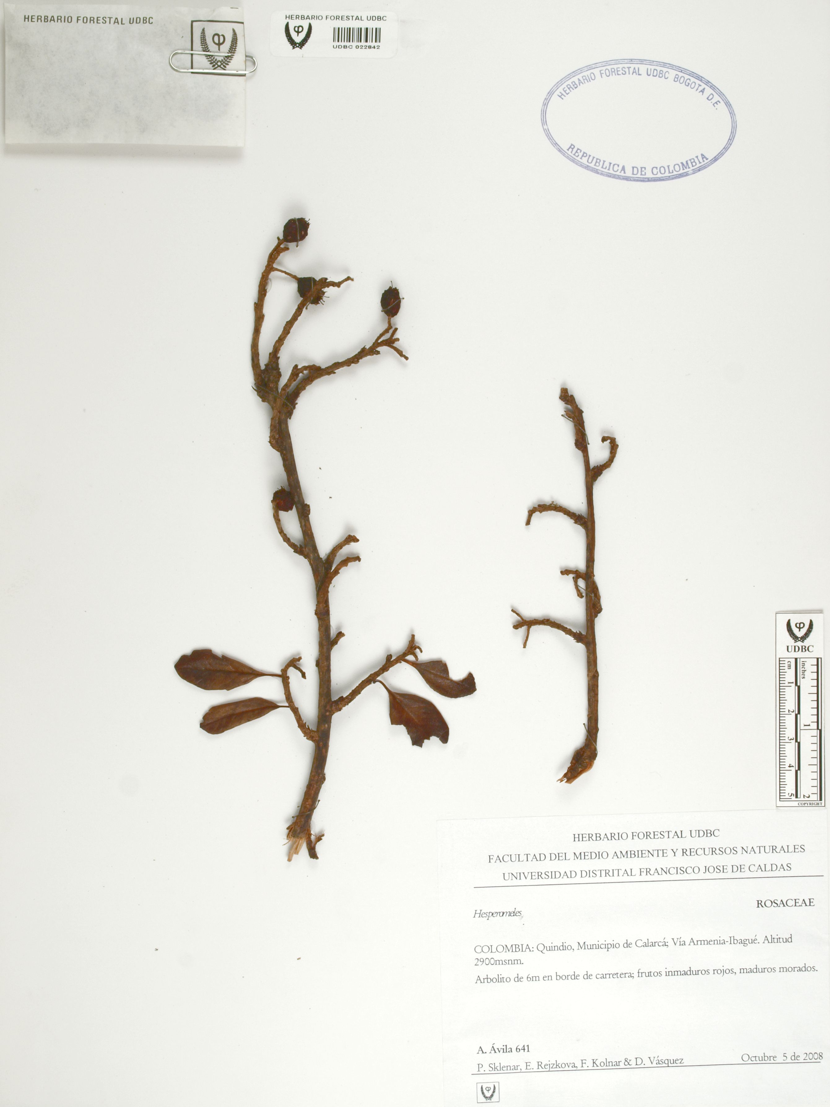 Fotografía del ejemplar Ávila, A. 641, determinado como Hesperomeles sp.