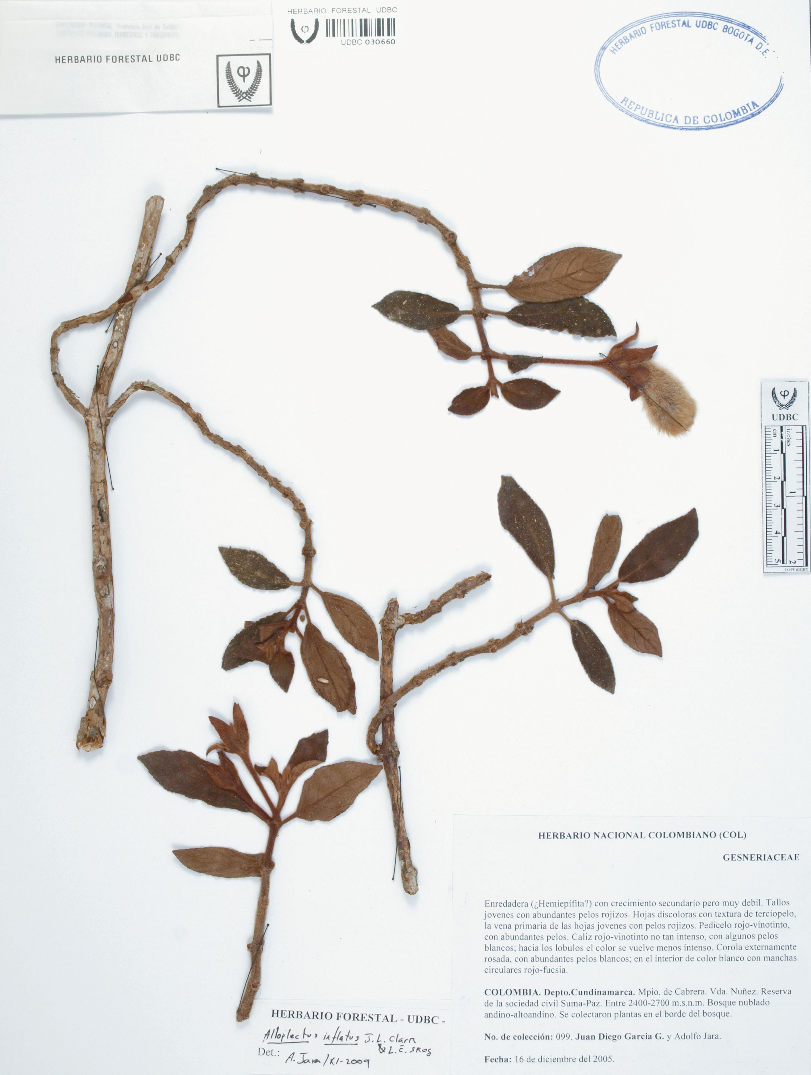 Fotografía del ejemplar García, J. 99, determinado como Alloplectus inflatus en el año 2009