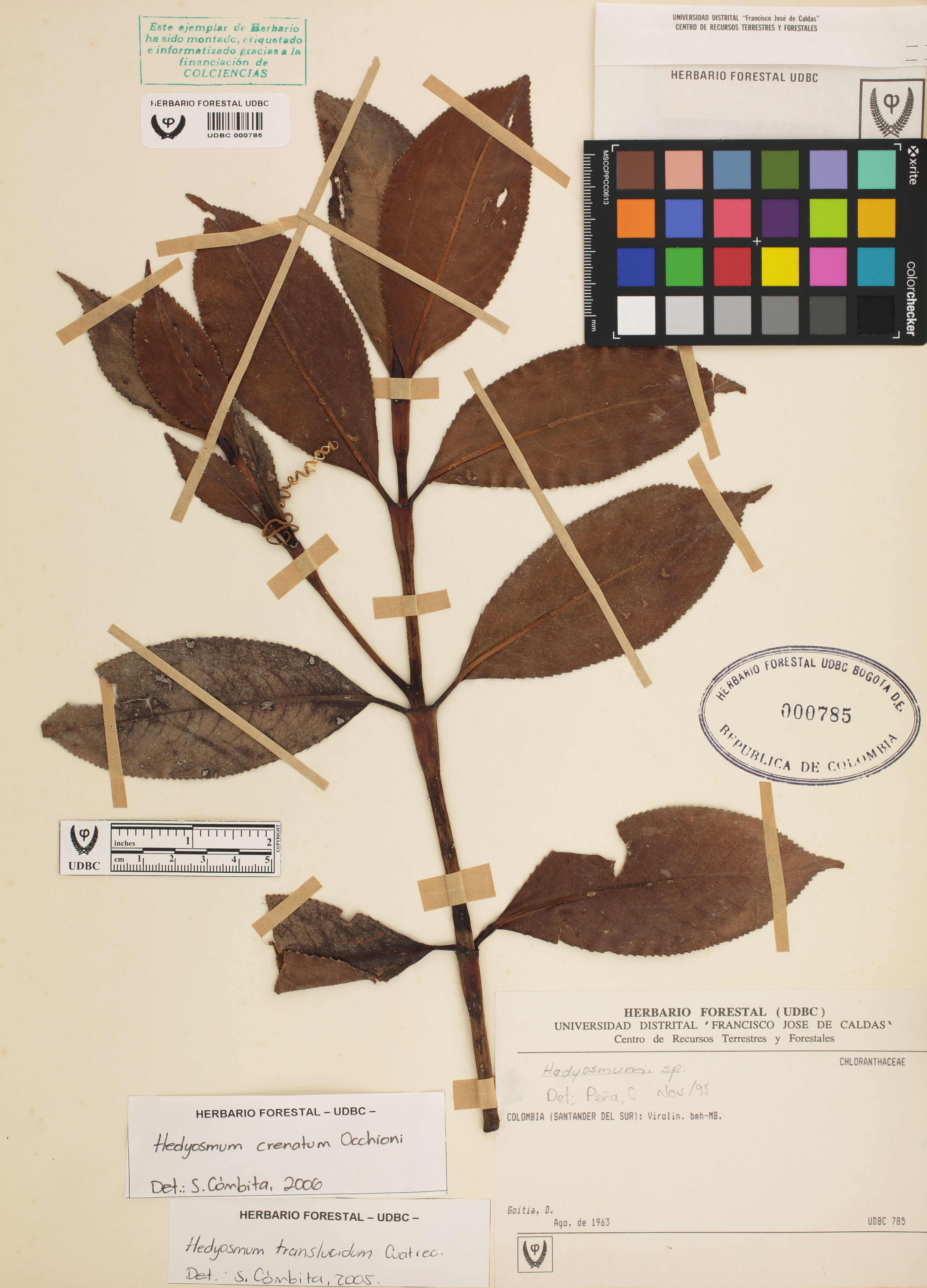 Fotografía del ejemplar Goitia, D., determinado como Hedyosmum crenatum en el año 2006