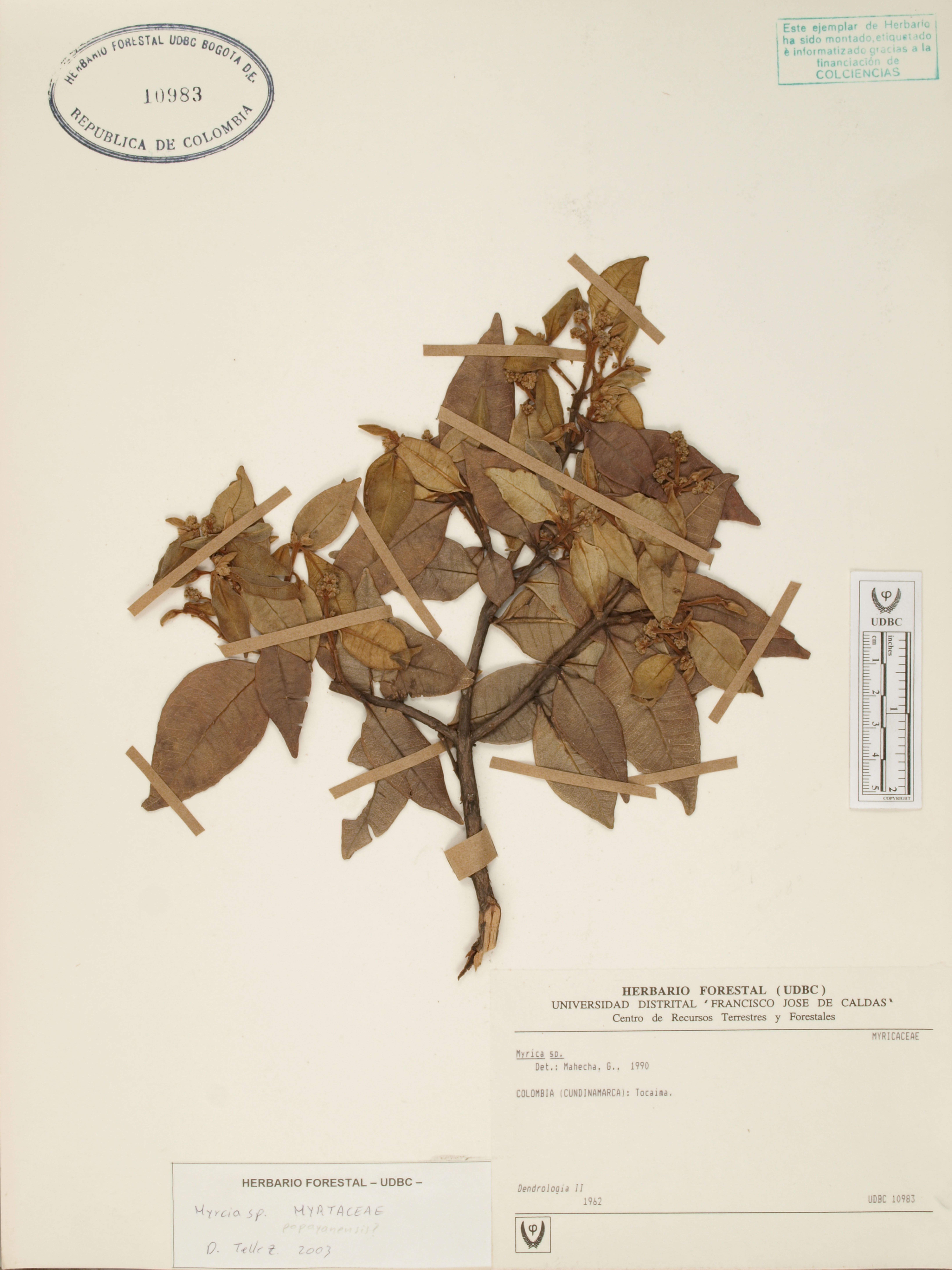 Fotografía del ejemplar Dendrología II- 1962,, determinado como Myrcia sp. en el año 2003