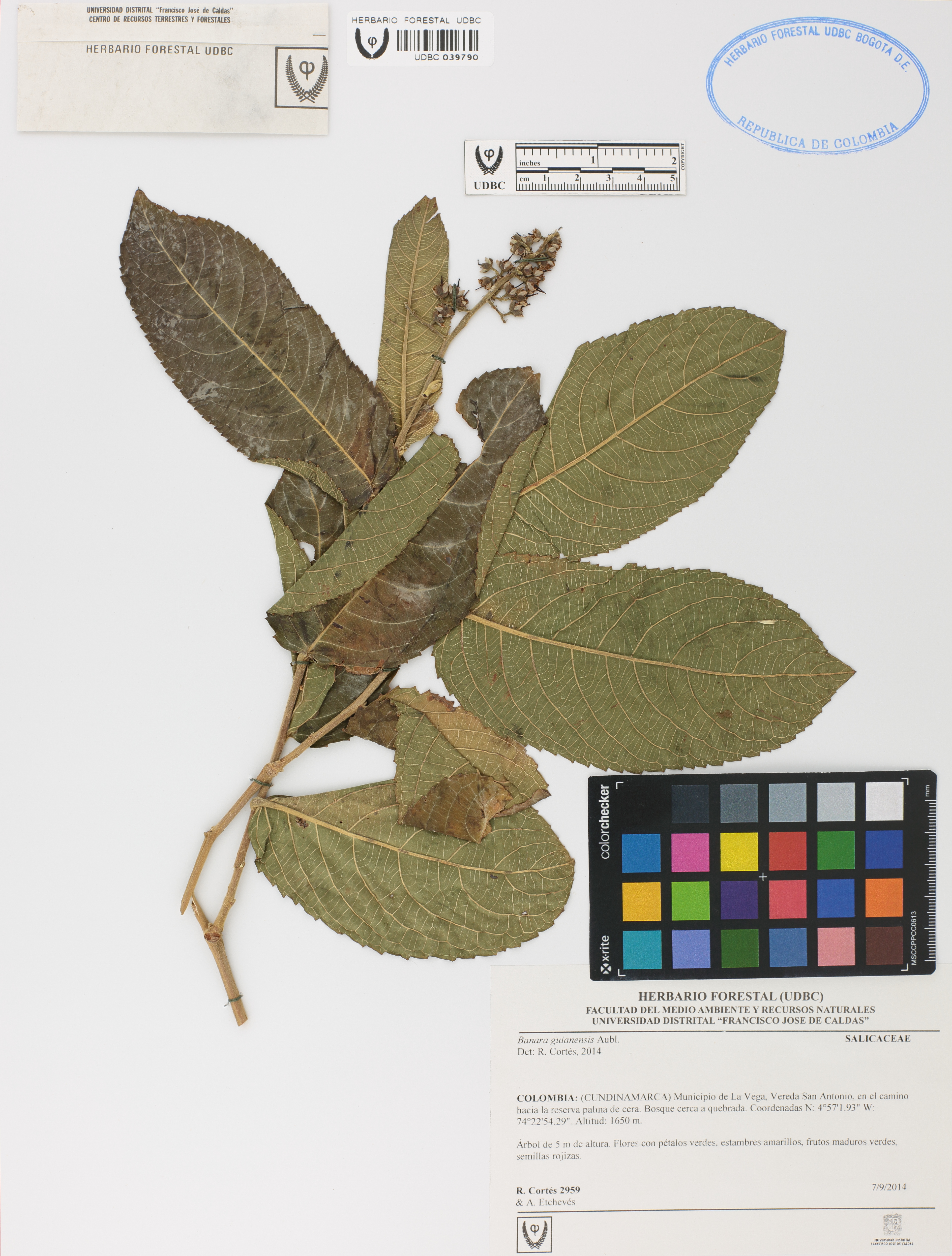 Fotografía del ejemplar Cortés, R. 2959, determinado como Banara guianensis en el año 2014