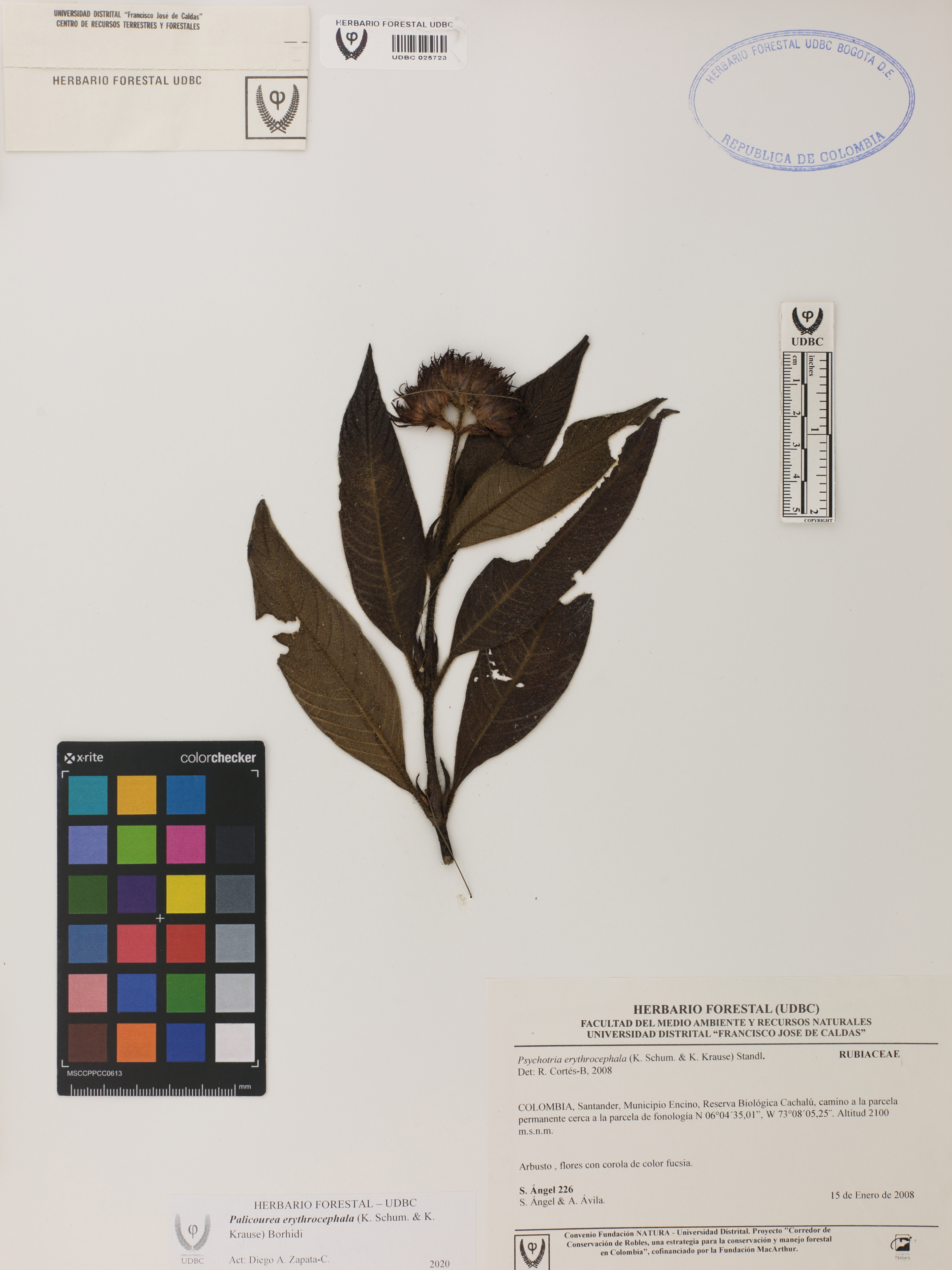 Fotografía del ejemplar Ángel, S. 226, determinado como Palicourea erythrocephala en el año 2008