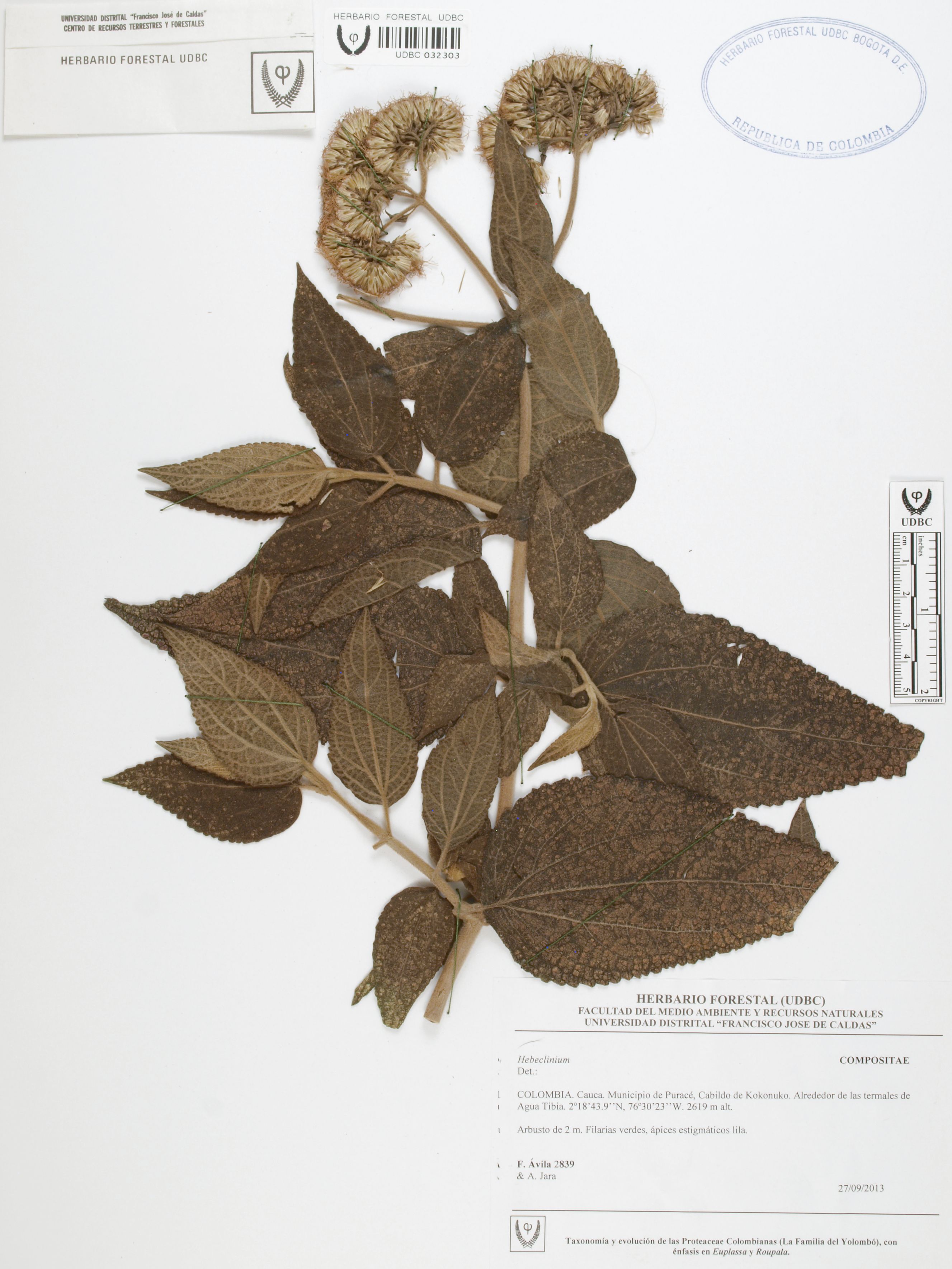 Fotografía del ejemplar Ávila, F. 2839, determinado como Hebeclinium sp.
