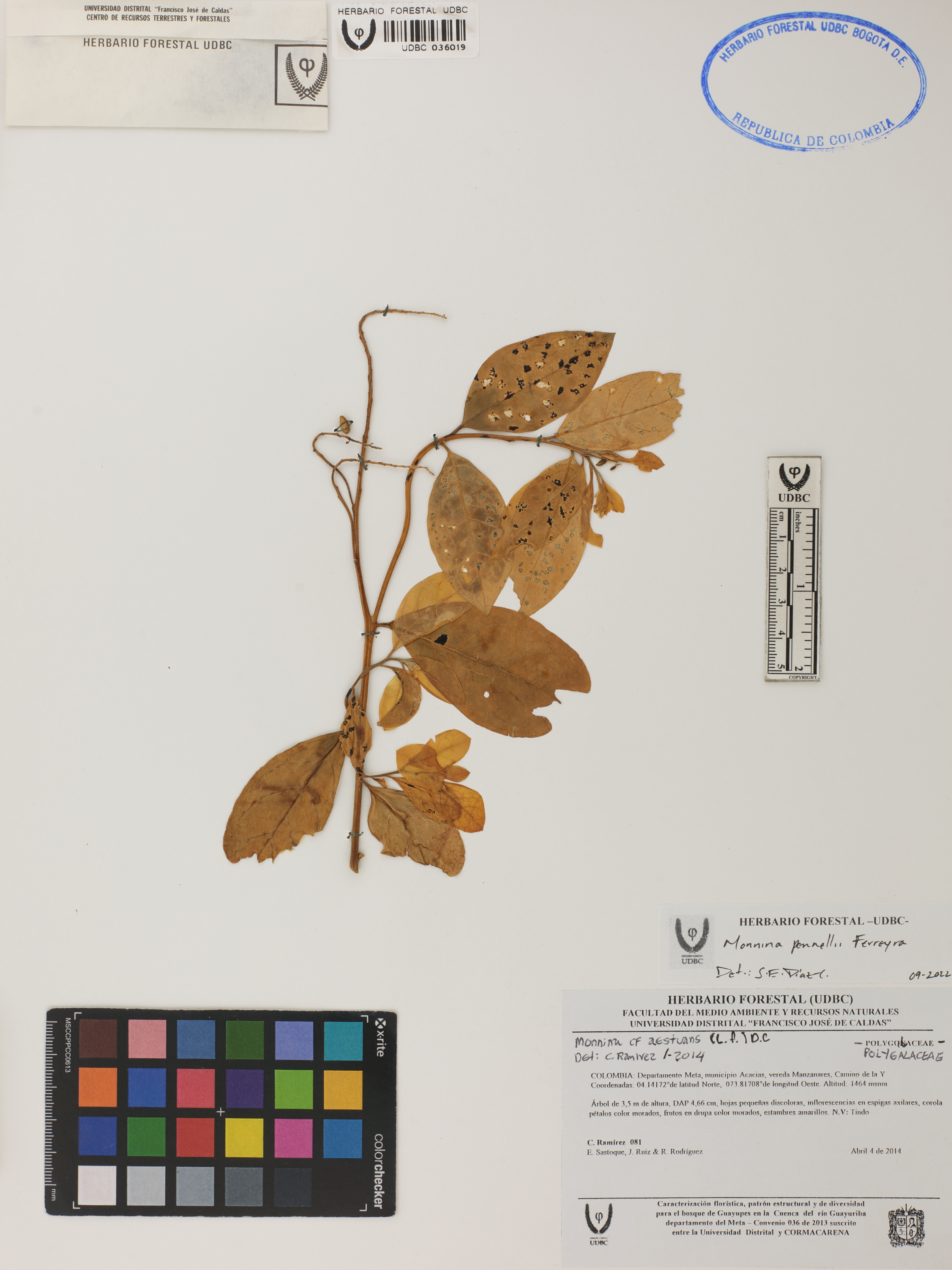 Fotografía del ejemplar Ramírez, C. 81, determinado como Monnina pennellii en el año 2022