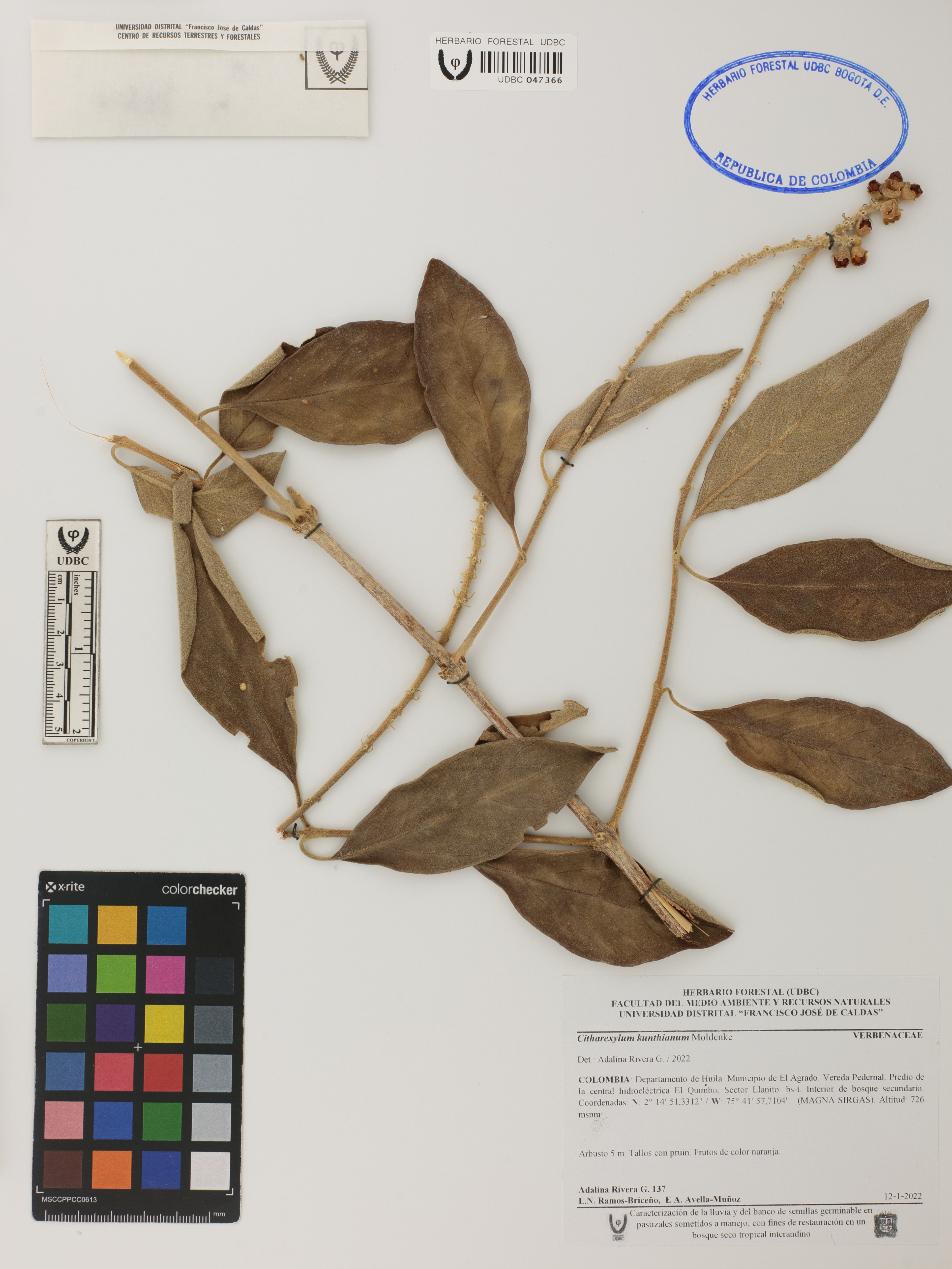 Fotografía del ejemplar Rivera-G., Adalina 137, determinado como Citharexylum kunthianum en el año 2022