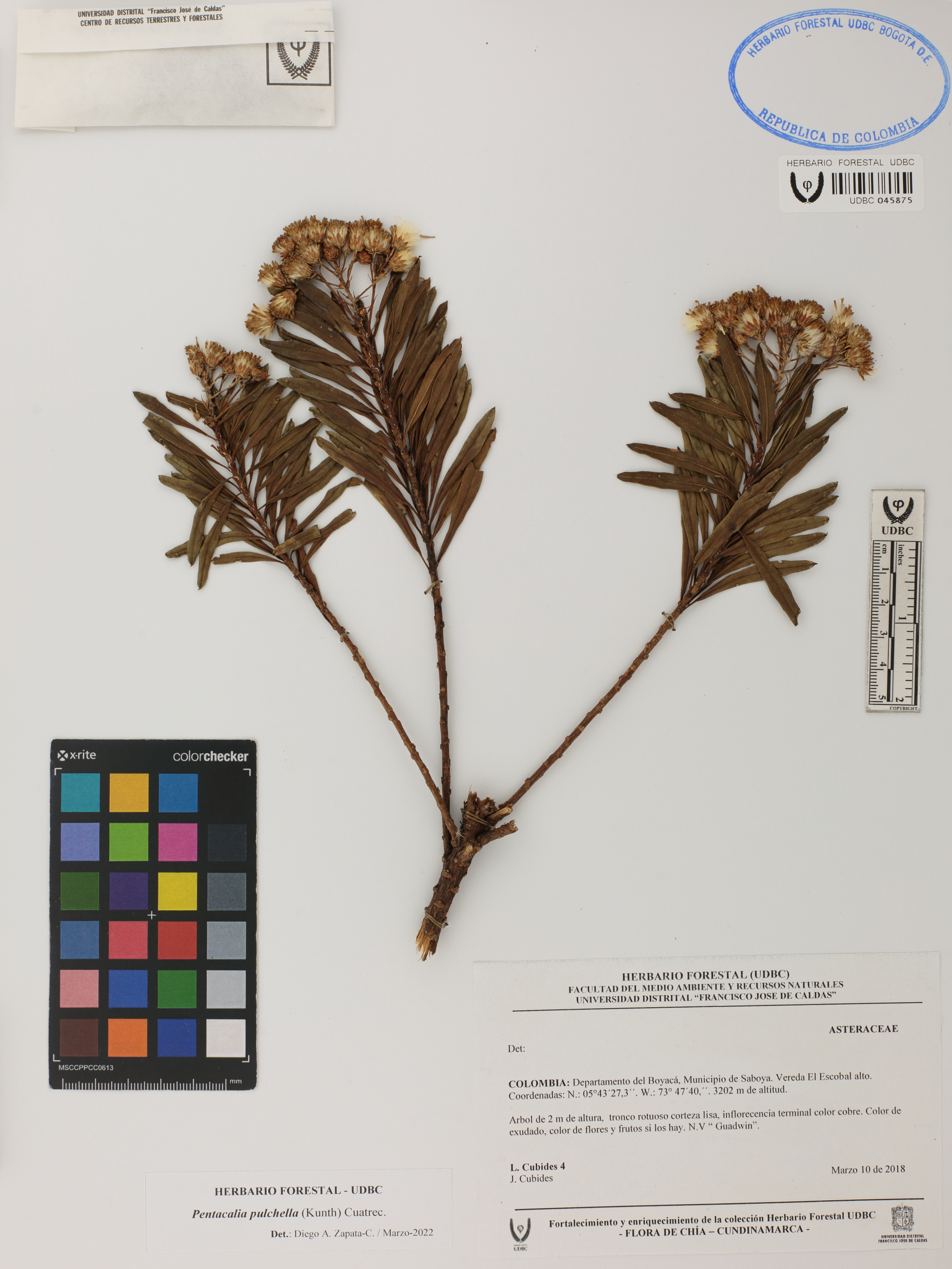 | dc.description | Fotografía del ejemplar Cubides, L. 4, determinado como Pentacalia pulchella en el año 2022 | |