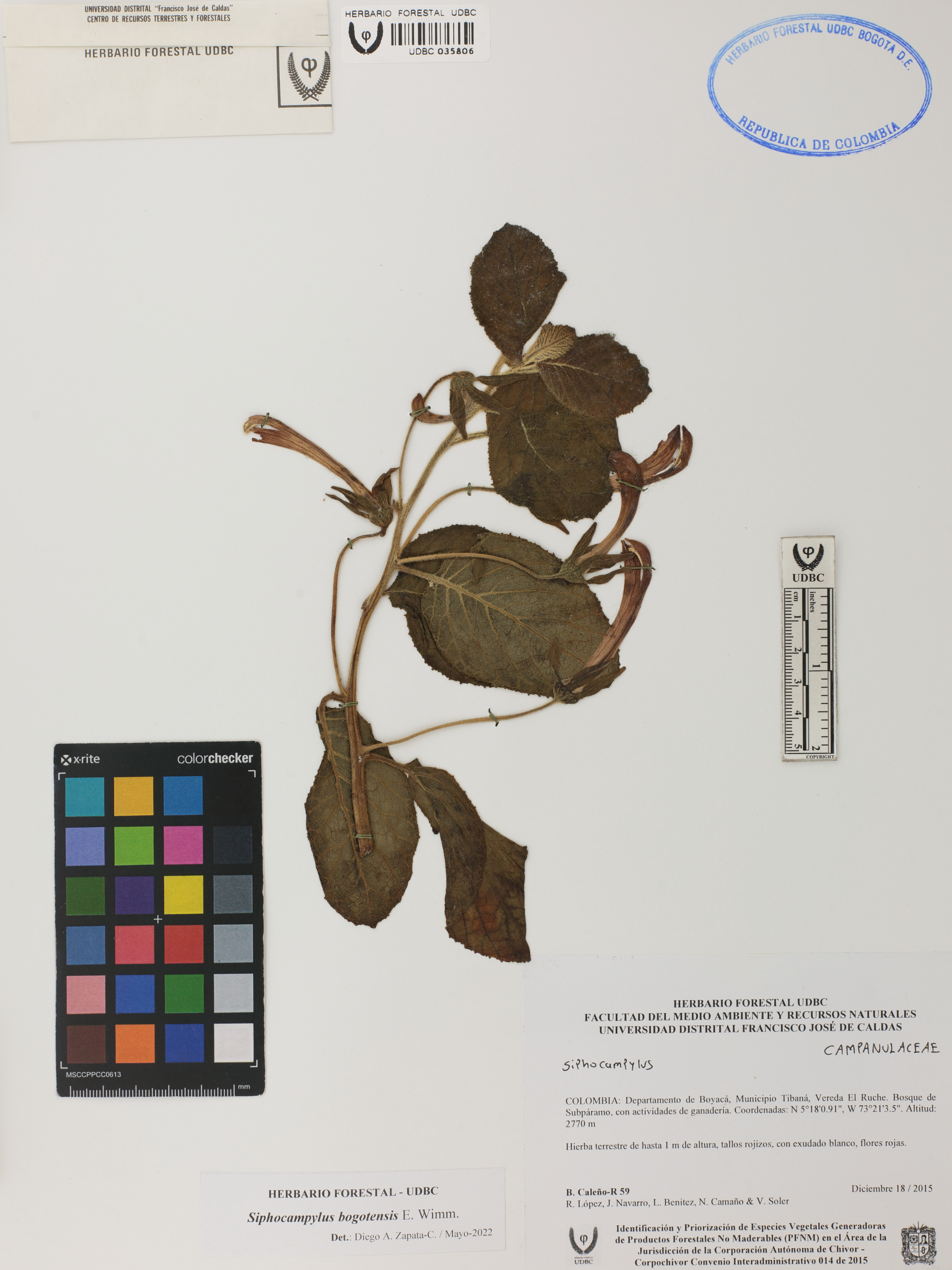 Fotografía del ejemplar Caleño-R., B. 59, determinado como Siphocampylus bogotensis en el año 2022