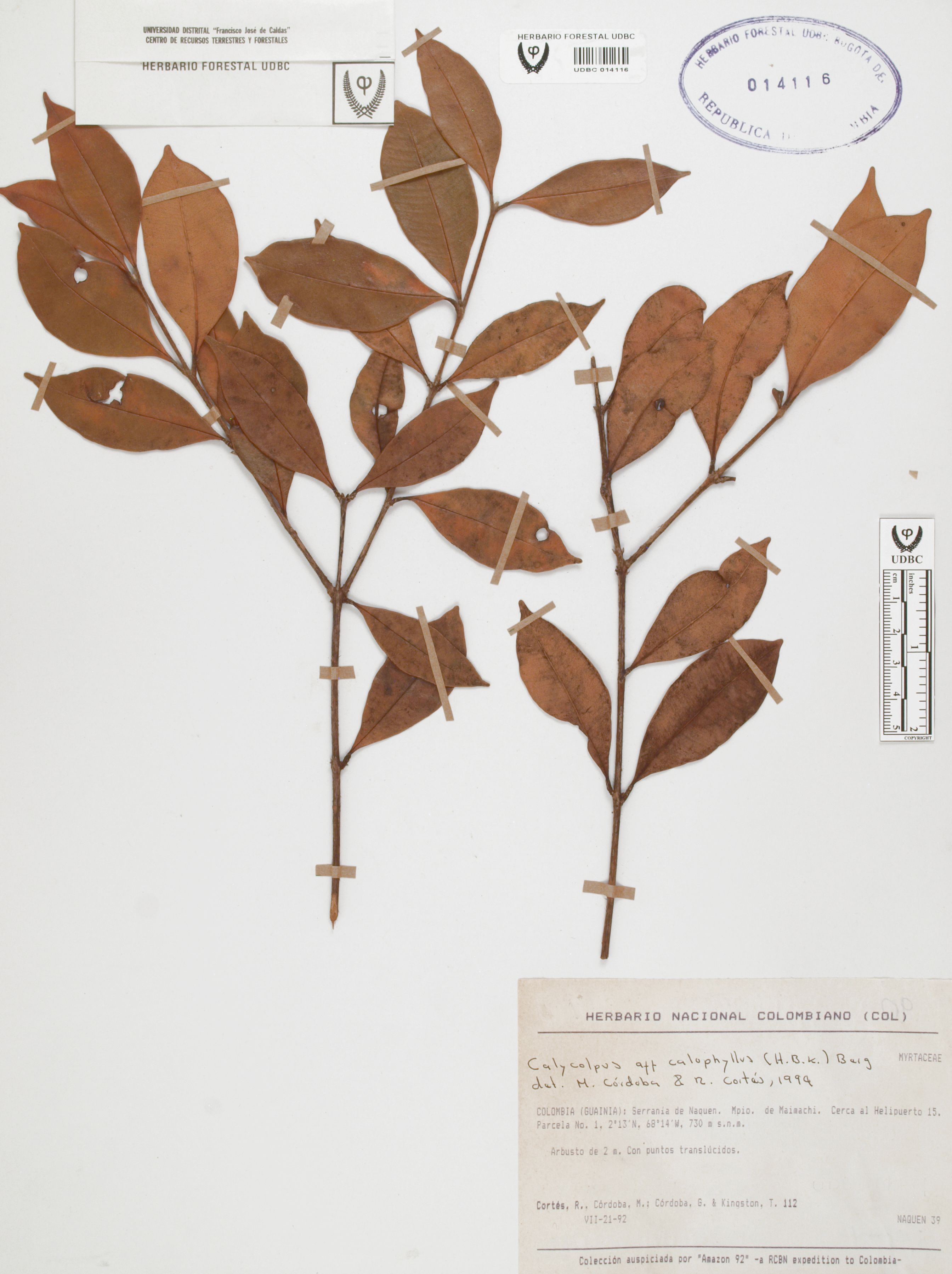 Fotografía del ejemplar Cortés, R. 112, determinado como Calycolpus calophyllus en el año 1994