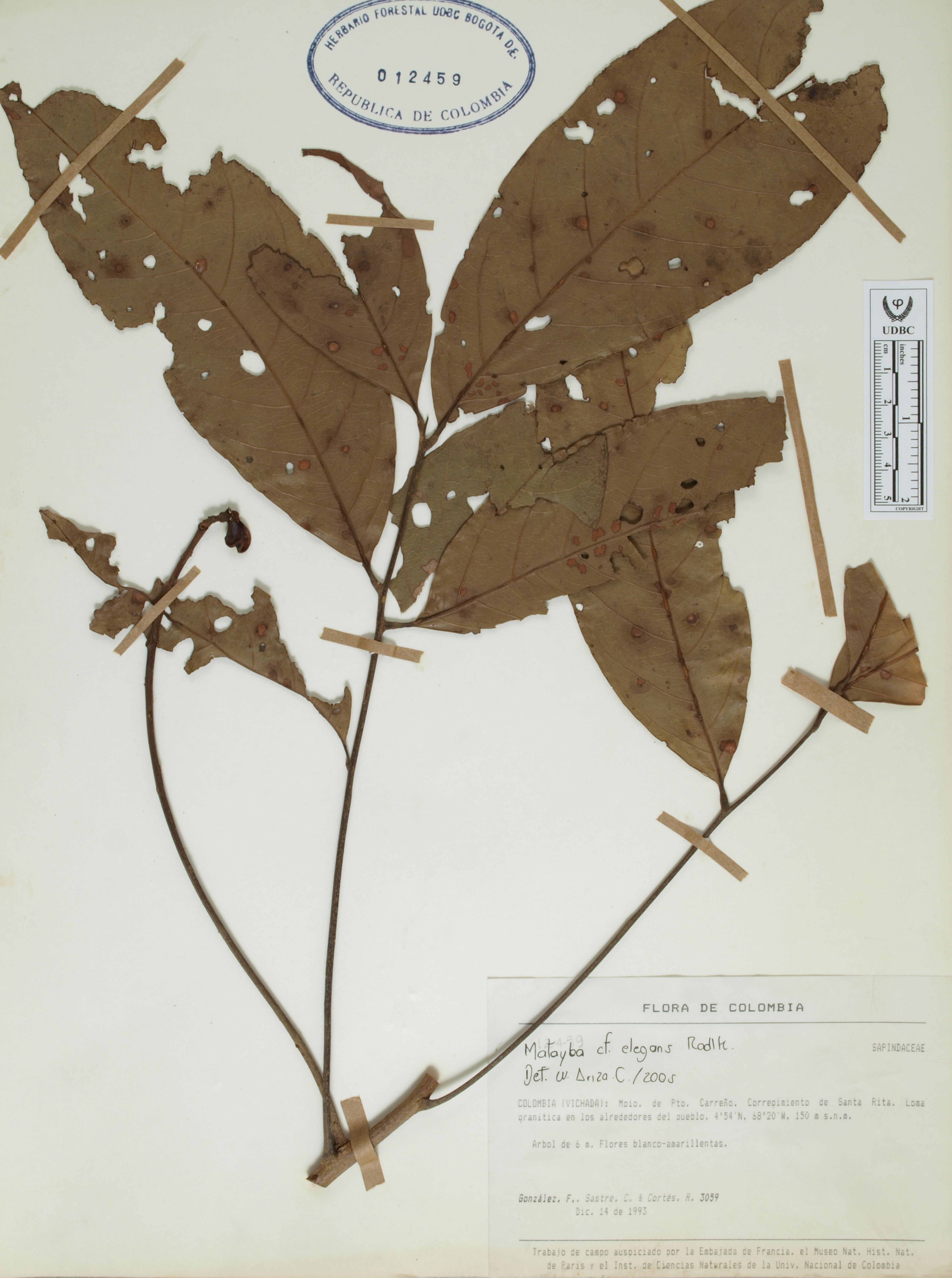 Fotografía del ejemplar González, F. 3059, determinado como Matayba elegans en el año 2005