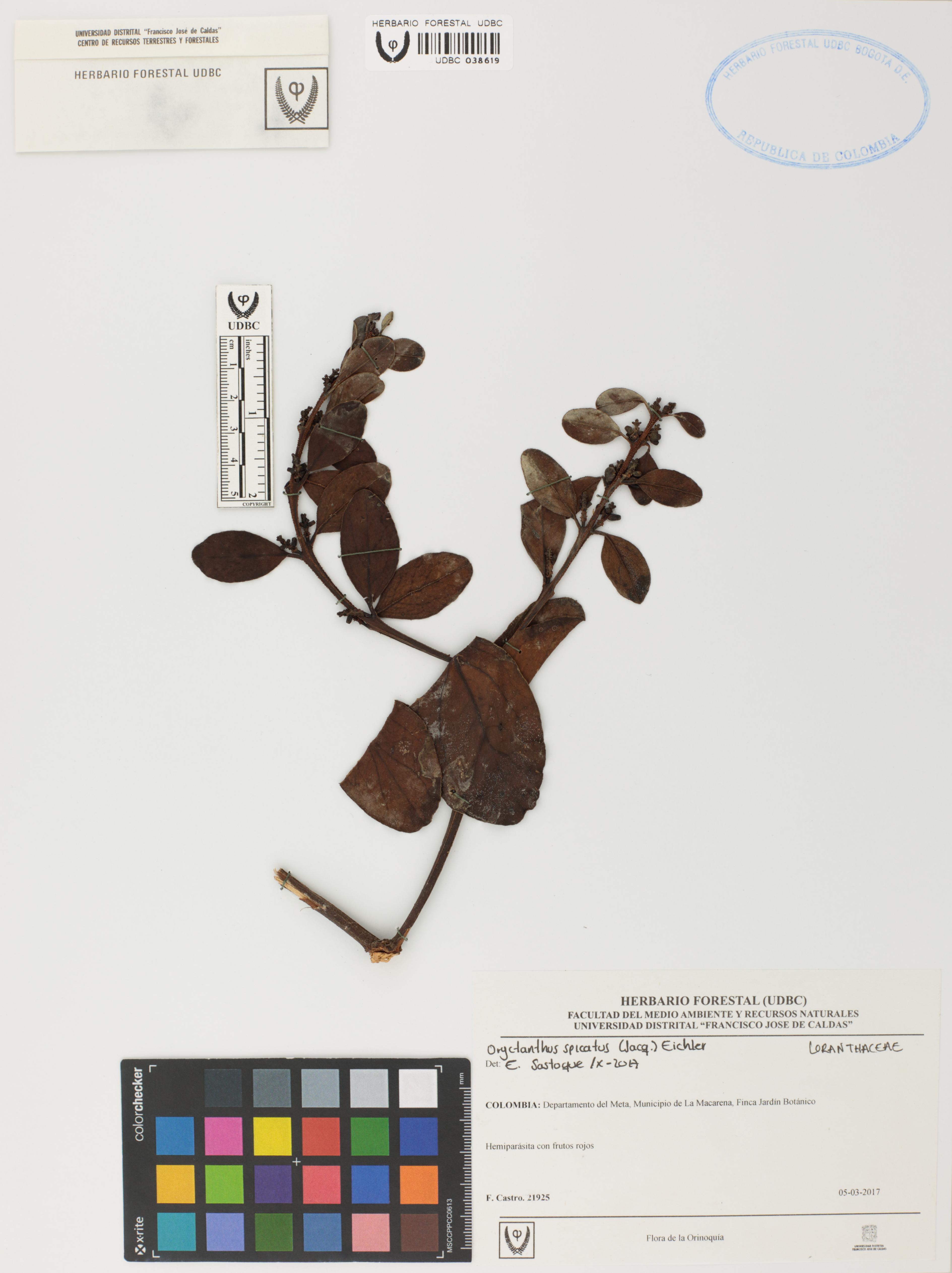 | dc.description | Fotografía del ejemplar Castro, F. 21925, determinado como Oryctanthus spicatus en el año 2017 | |