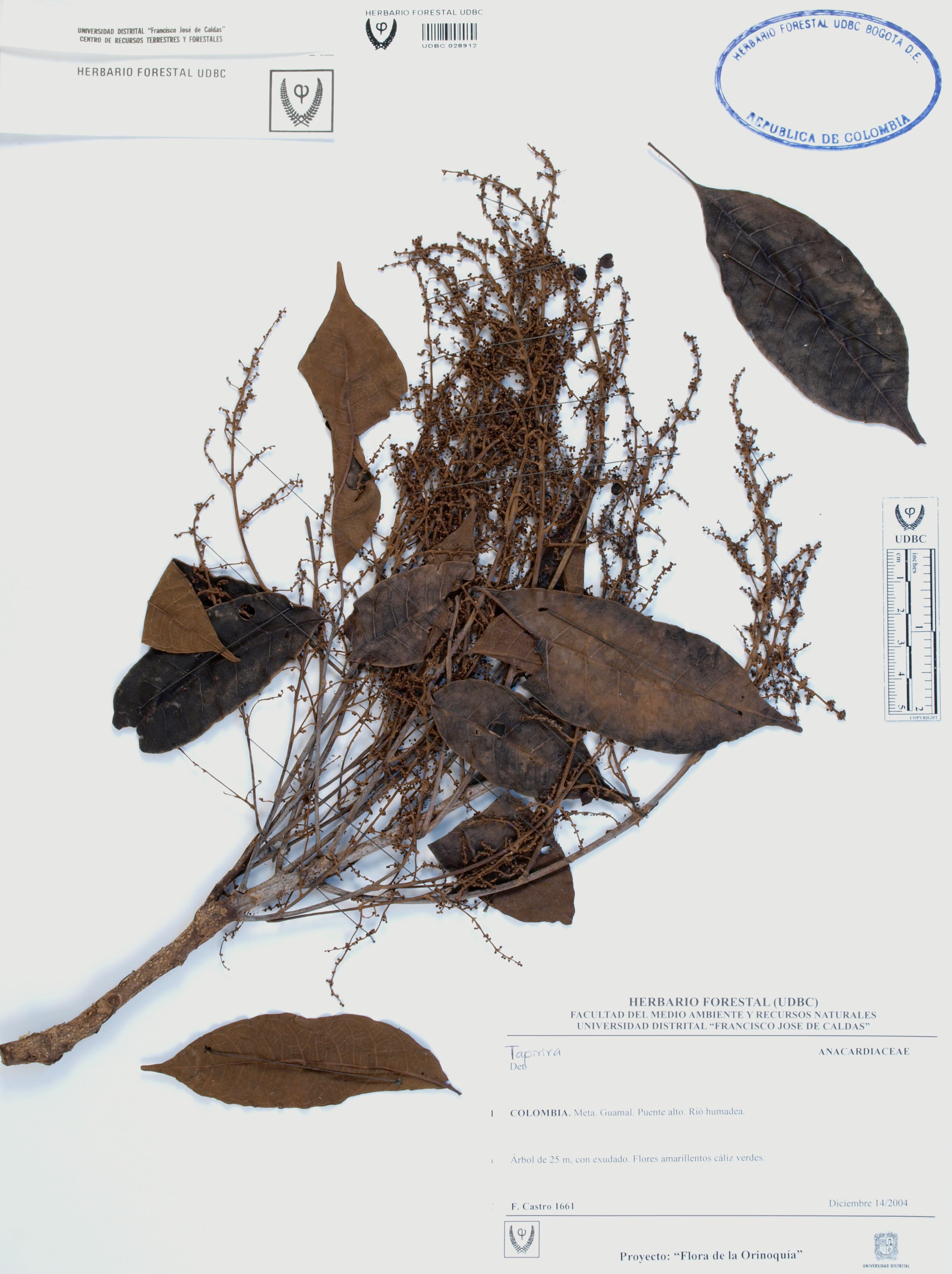 | dc.description | Fotografía del ejemplar Castro, F. 1661, determinado como Tapirira sp. | |