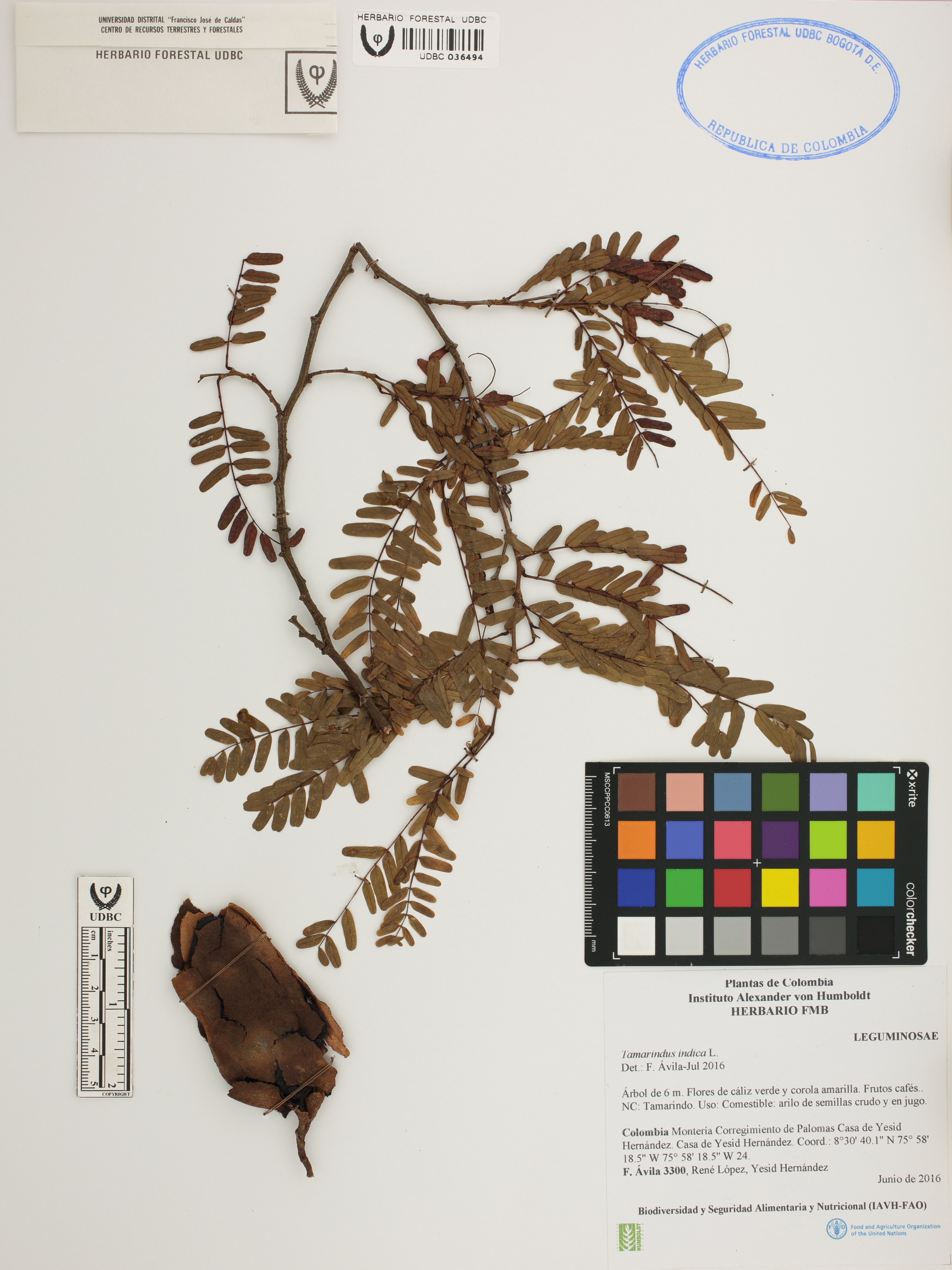 | dc.description | Fotografía del ejemplar Ávila, F. 3300, determinado como Tamarindus indica en el año 2016 | |