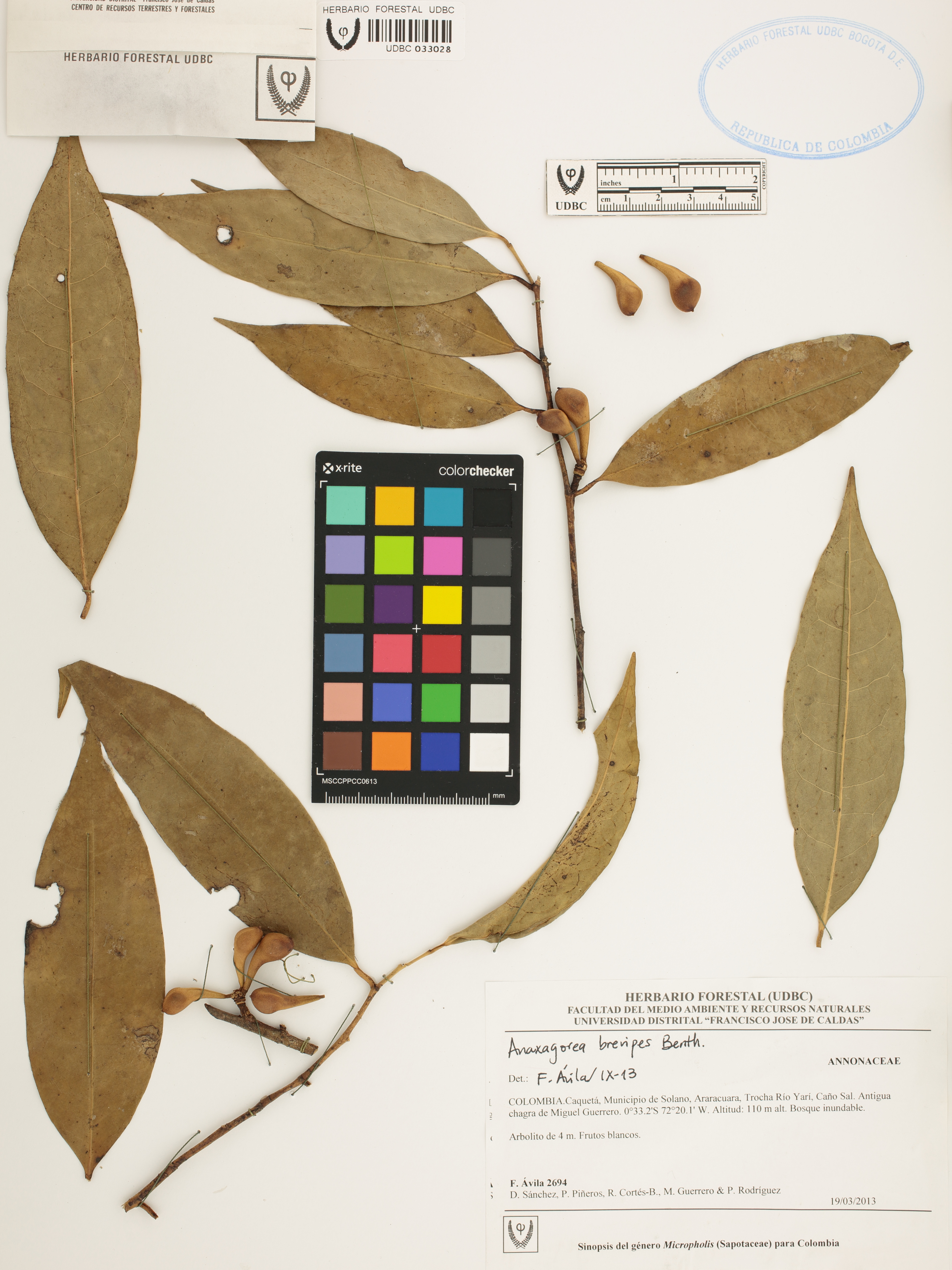 Fotografía del ejemplar Ávila, F. 2694, determinado como Anaxagorea brevipes en el año 2013