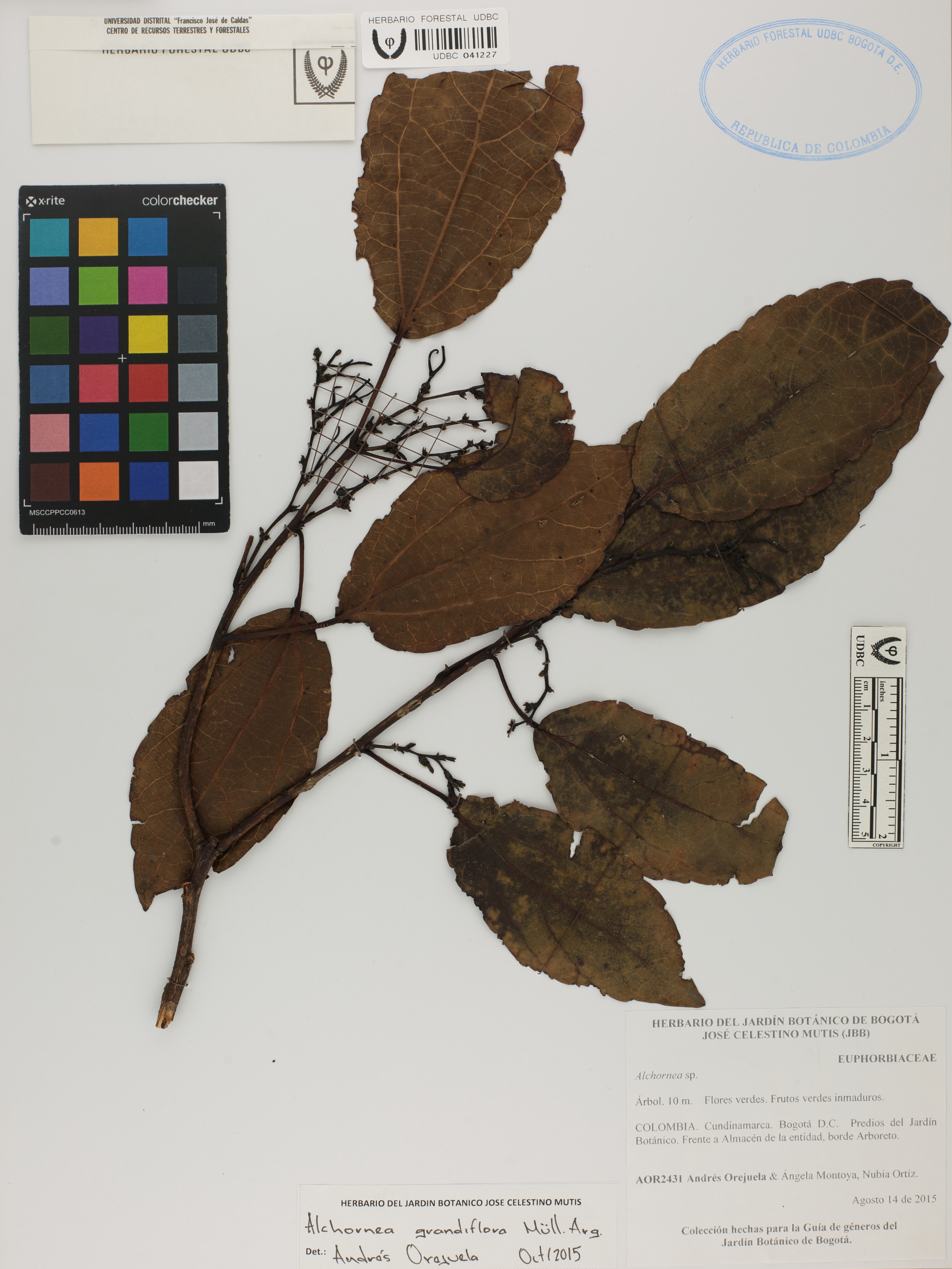 | dc.description | Fotografía del ejemplar Orejuela, A. 2431, determinado como Alchornea grandiflora en el año 2015 | |