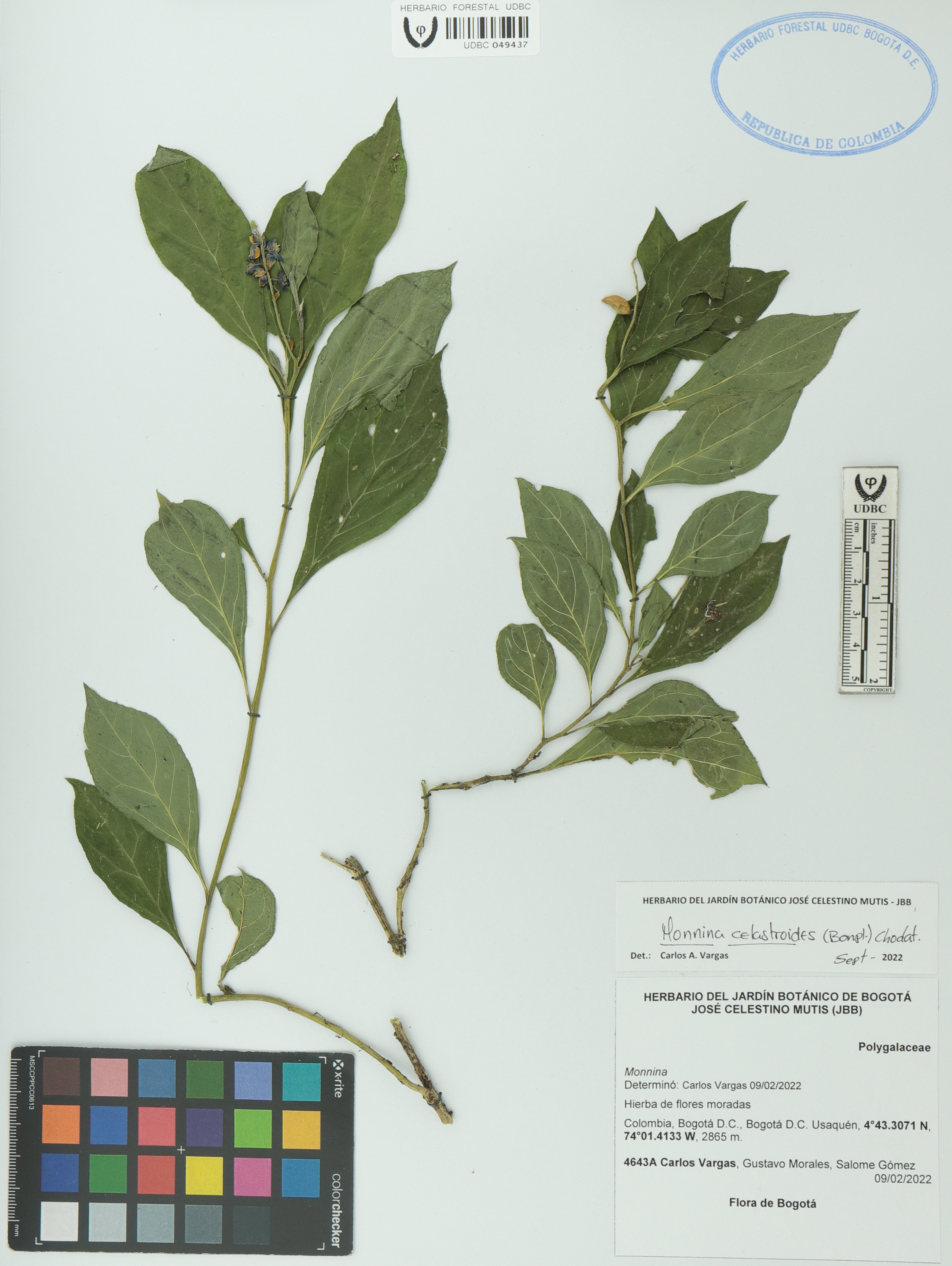 Fotografía del ejemplar Vargas, C. 4643A, determinado como Monnina celastroides en el año 2022