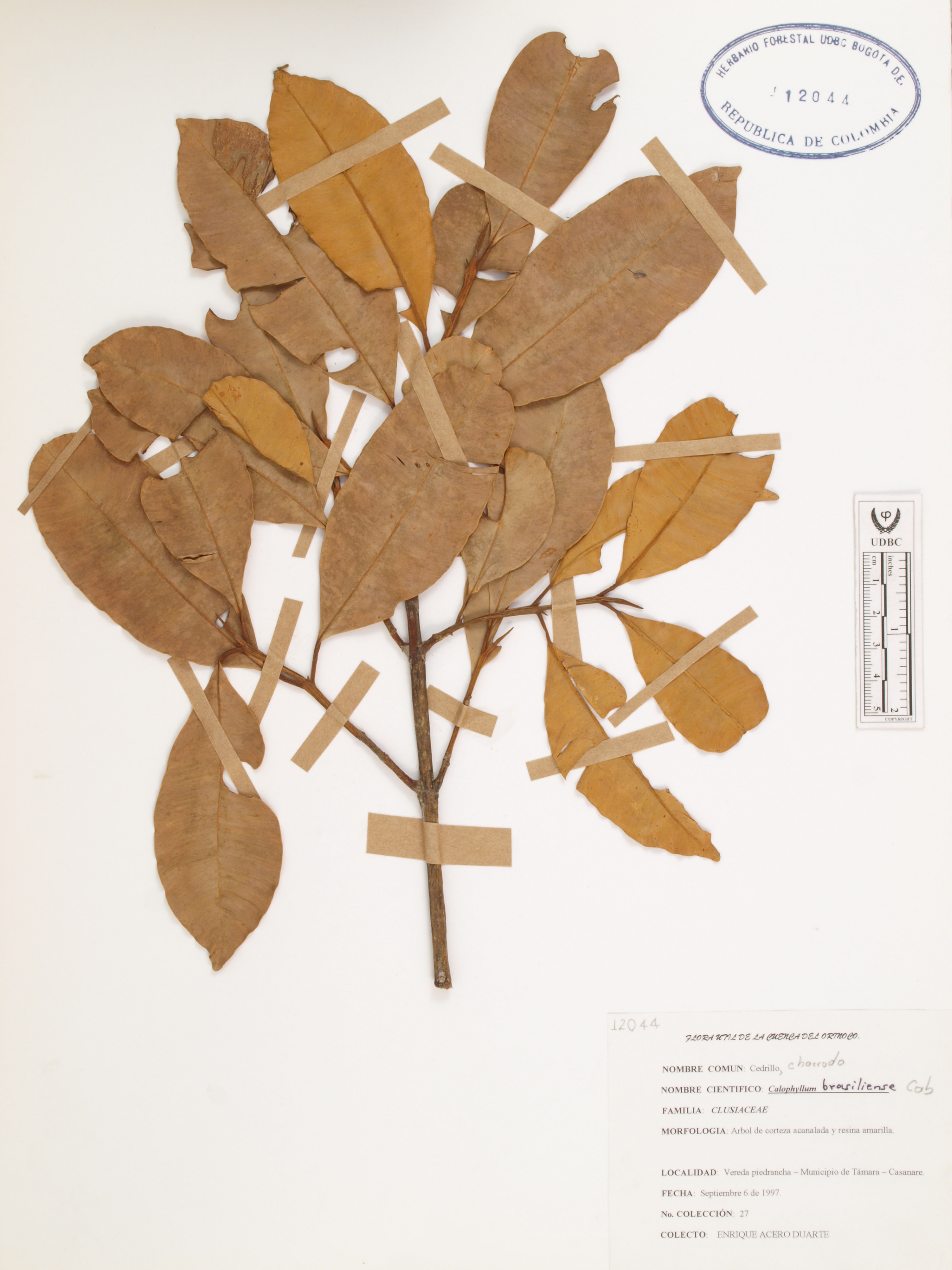 Fotografía del ejemplar Acero, E. 27, determinado como Calophyllum brasiliense