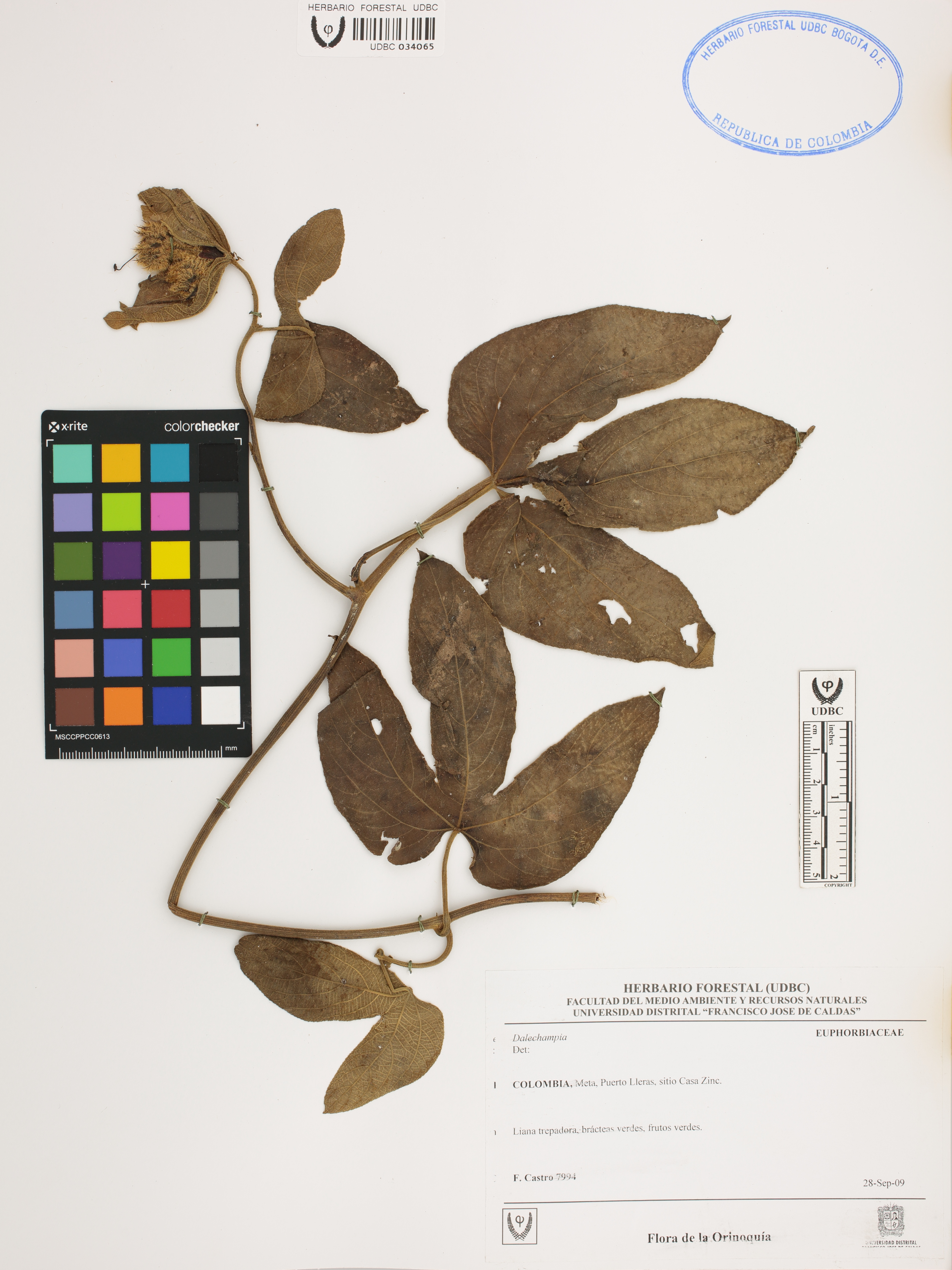 Fotografía del ejemplar Castro, F. 7994, determinado como Dalechampia sp.