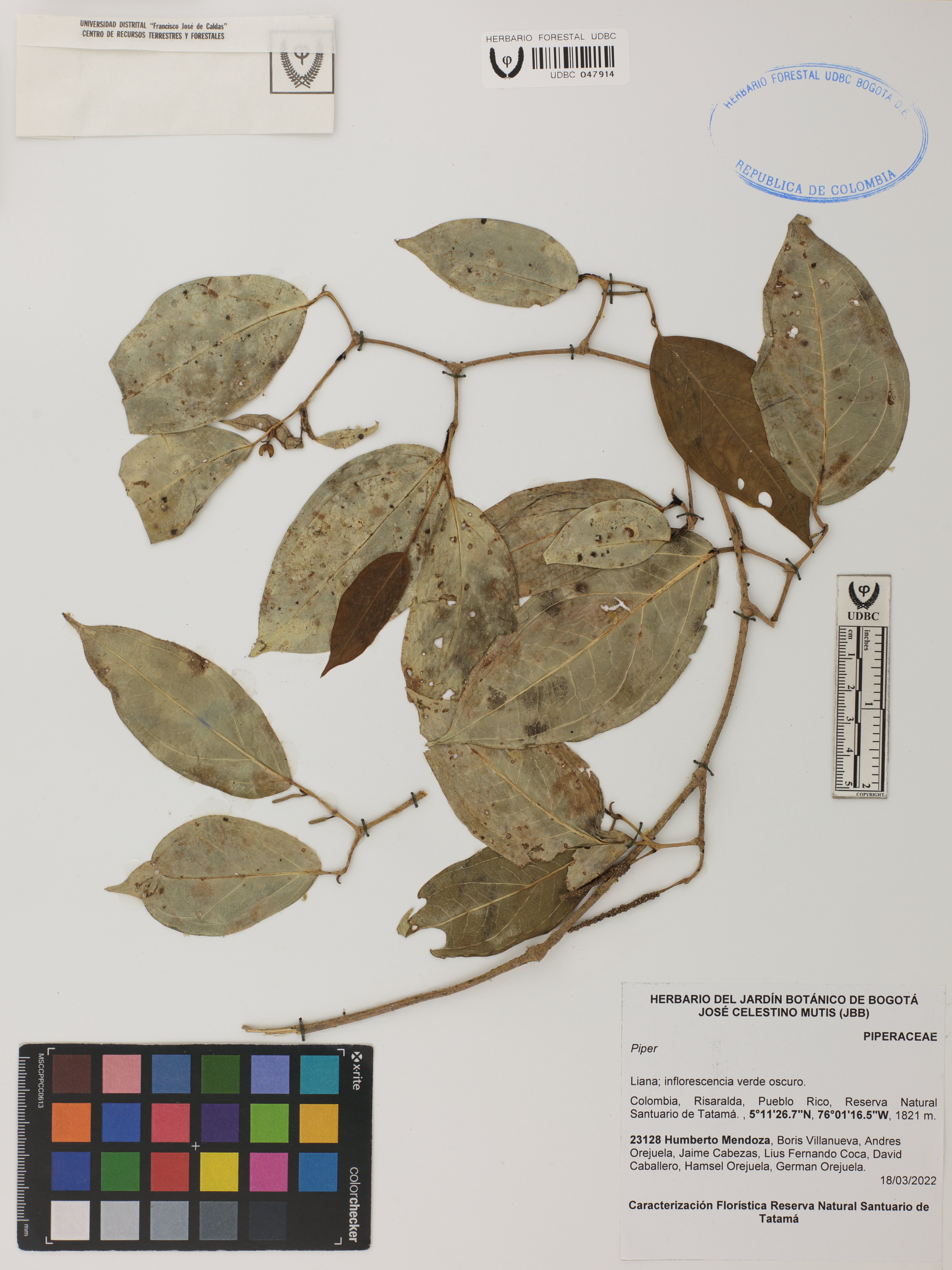 Fotografía del ejemplar Mendoza, H. 23128, determinado como Piper lenticellosum en el año 2024
