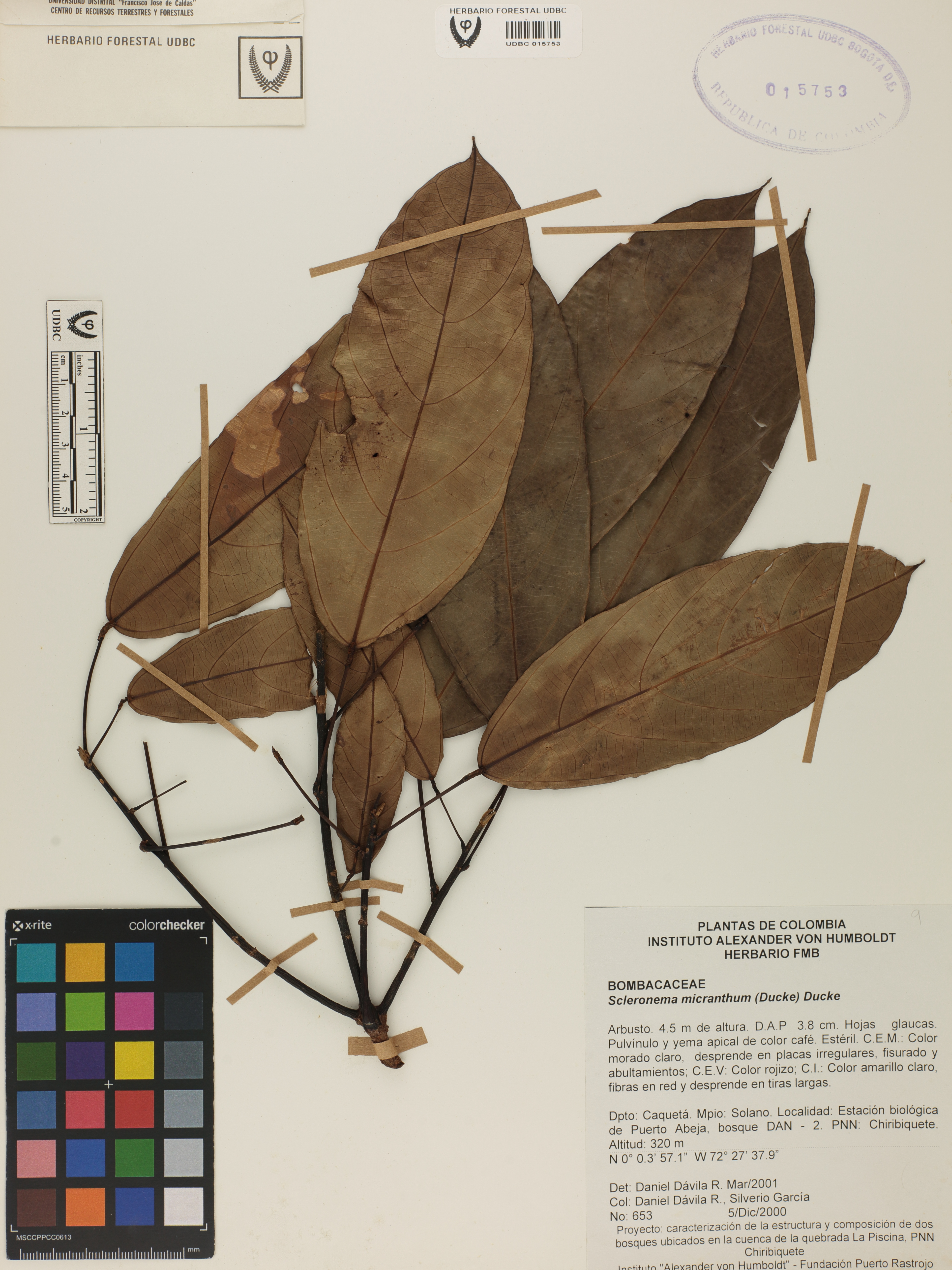 Fotografía del ejemplar Dávila, D. 653, determinado como Scleronema micranthum en el año 2001