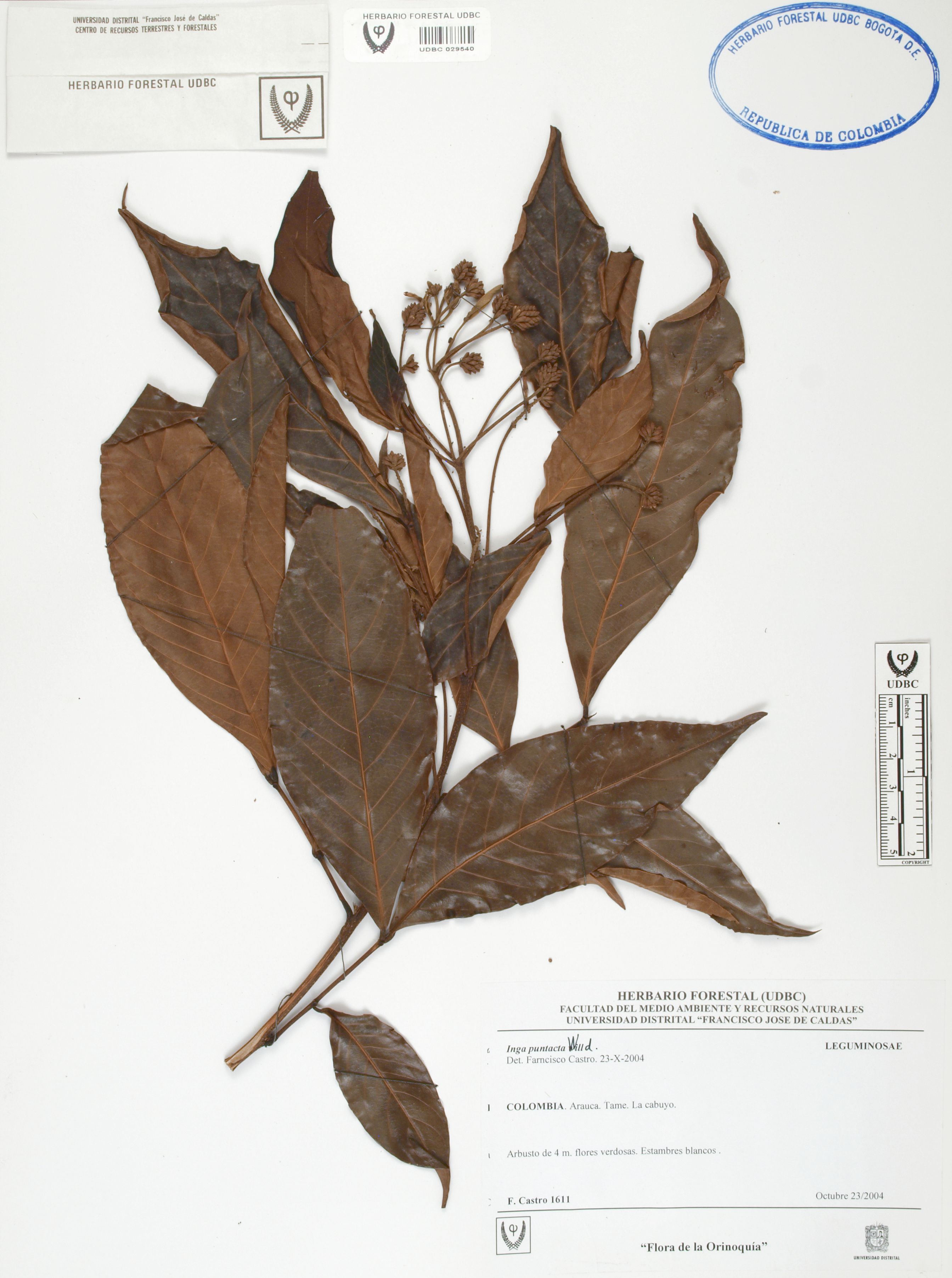 Fotografía del ejemplar Castro, F. 1611, determinado como Inga punctata en el año 2004