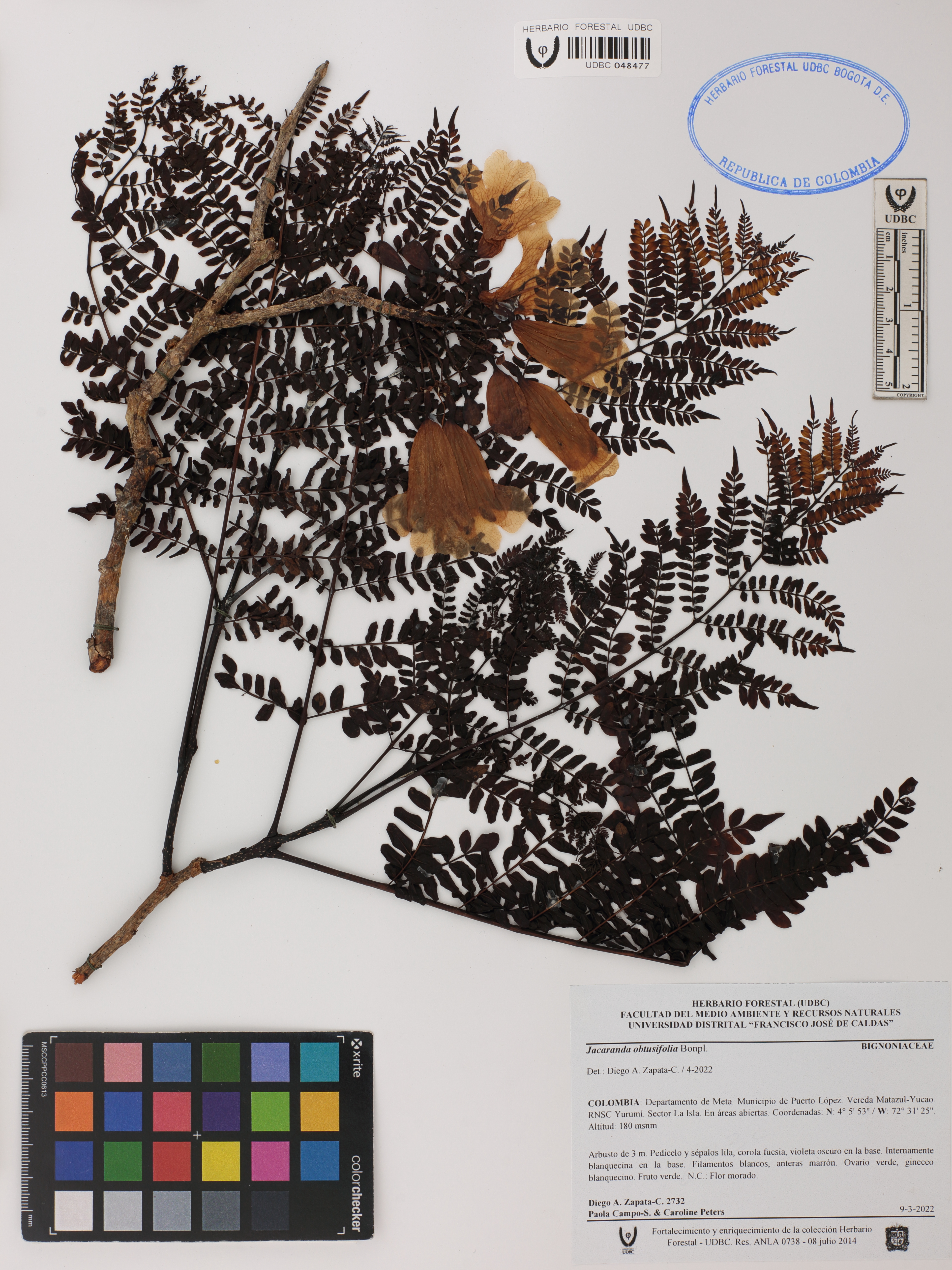 | dc.description | Fotografía del ejemplar Zapata-C., D. 2732, determinado como Jacaranda obtusifolia en el año 2022 | |