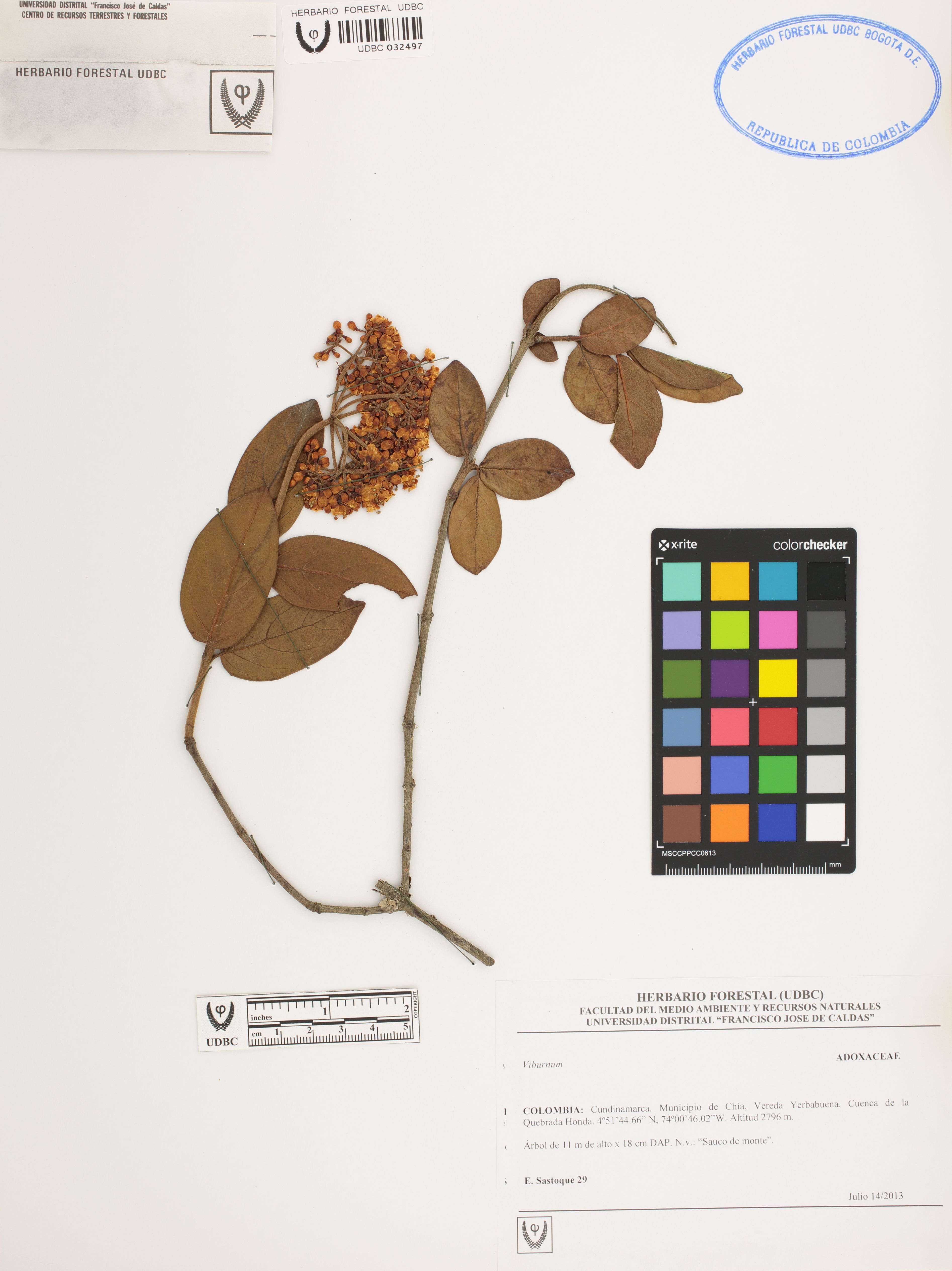 Fotografía del ejemplar Sastoque, E. 29, determinado como Viburnum sp.