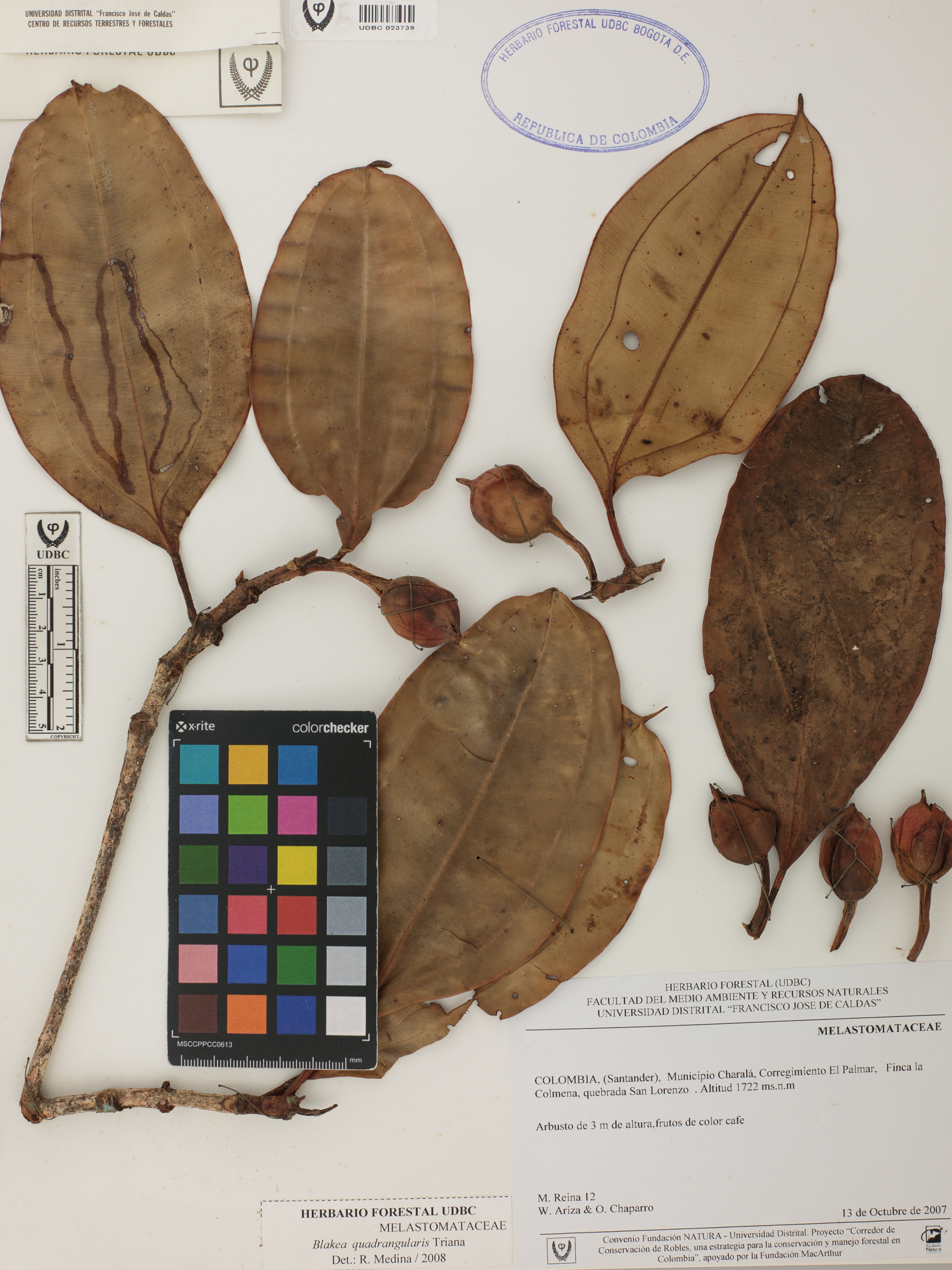 Fotografía del ejemplar Reina, M. 12, determinado como Blakea quadrangularis en el año 2008