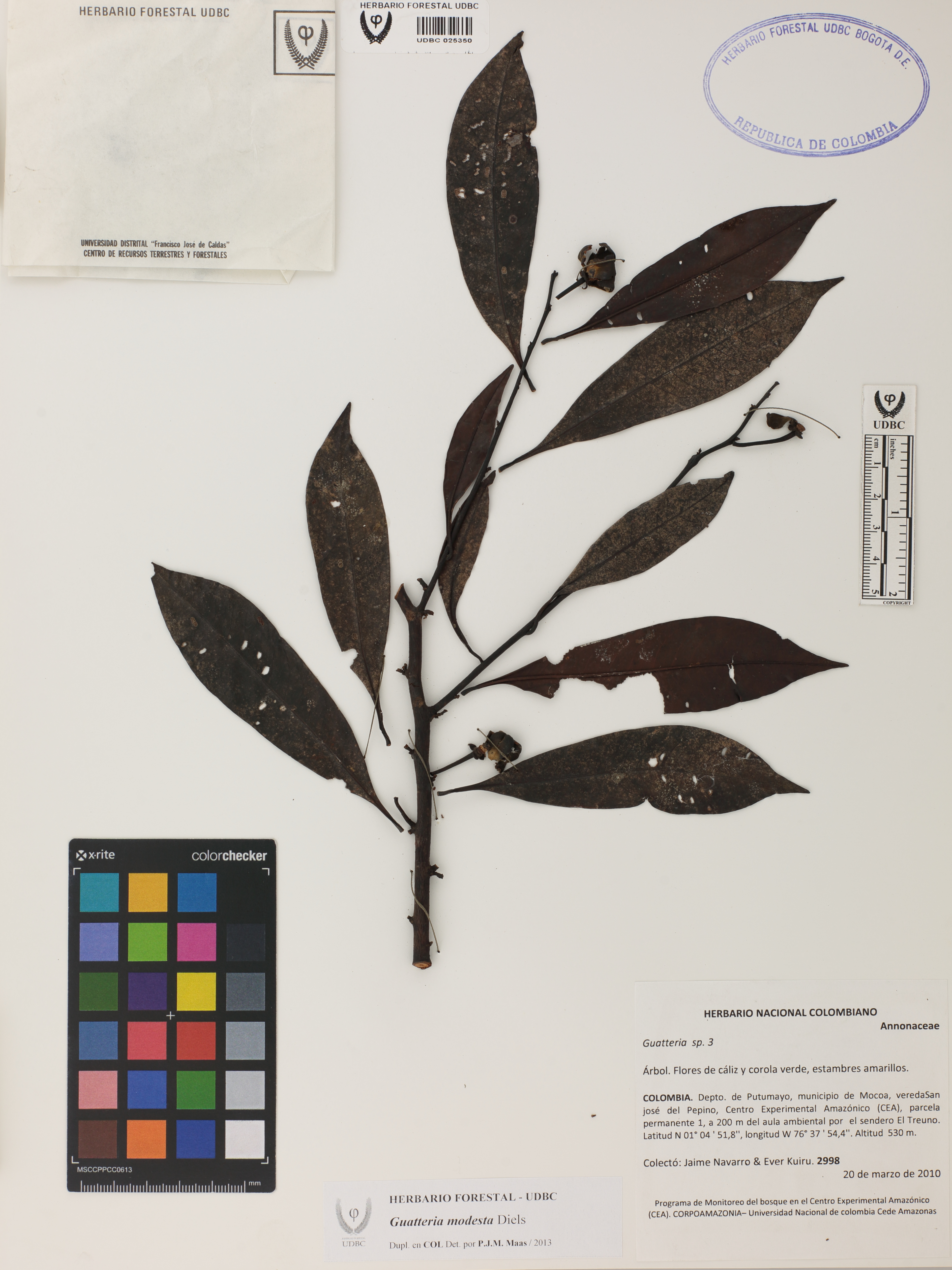 Fotografía del ejemplar Navarro, J. 2998, determinado como Guatteria modesta en el año 2013