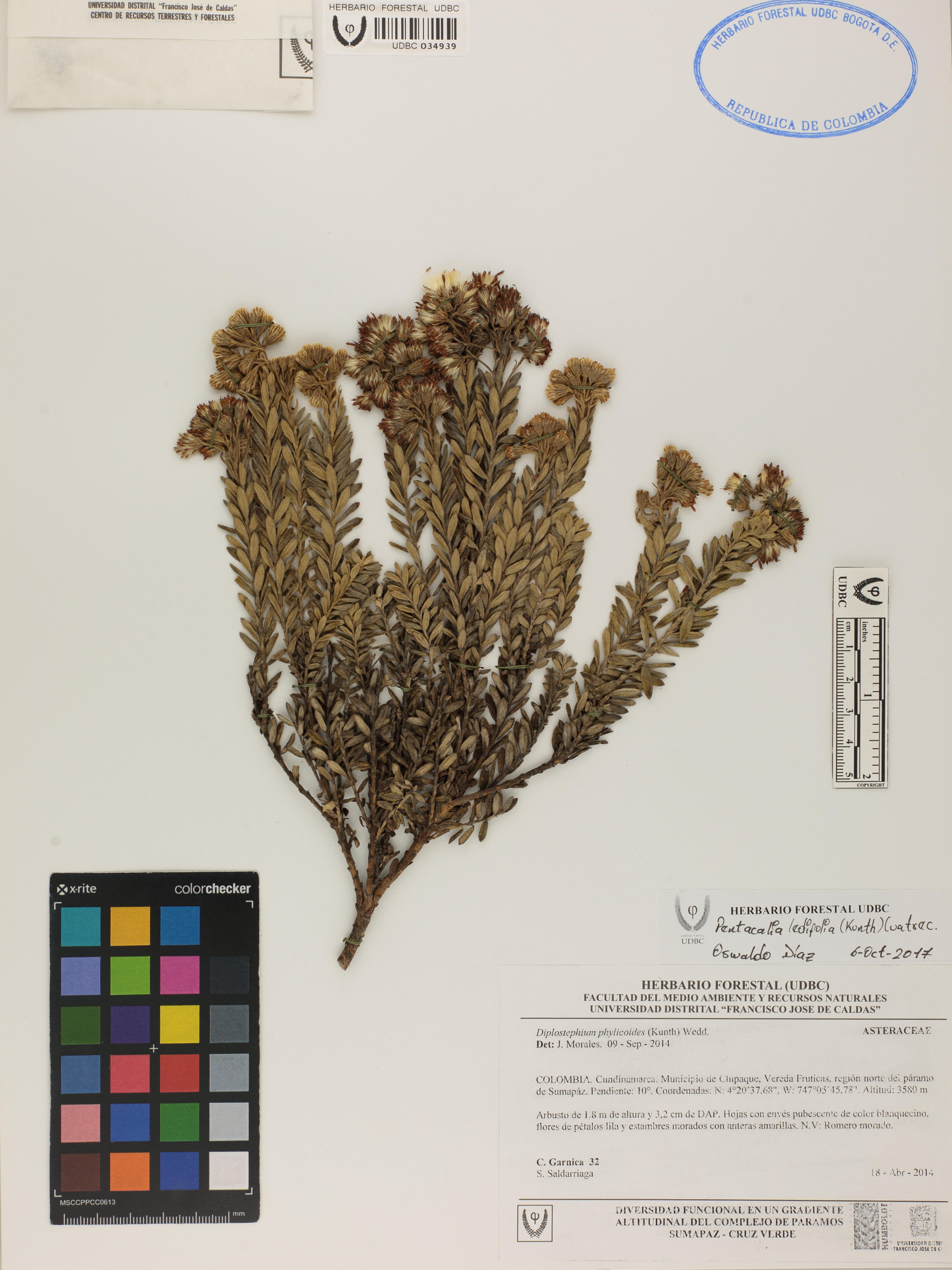 Fotografía del ejemplar Garnica, C. 32, determinado como Pentacalia ledifolia en el año 2017