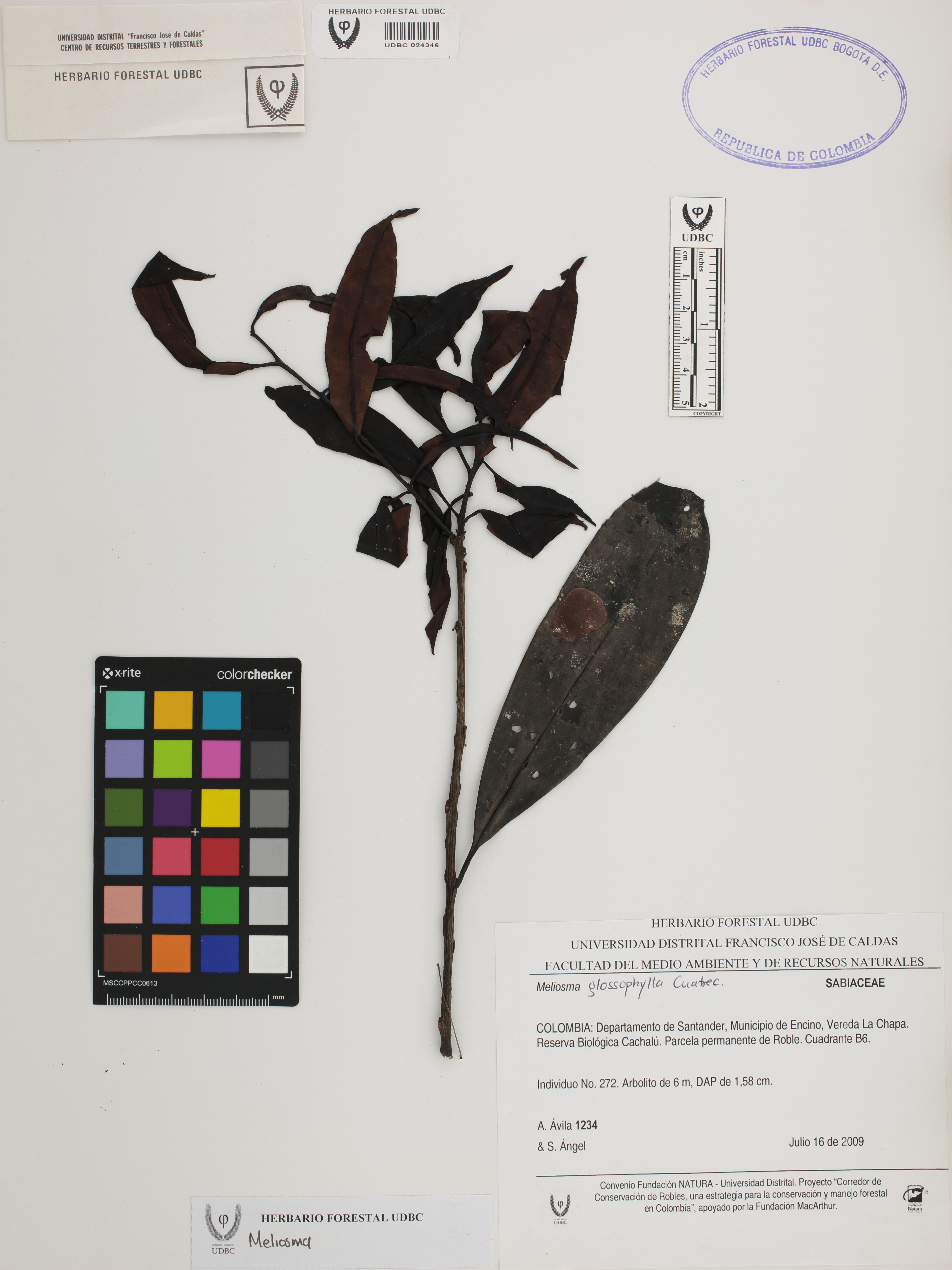Fotografía del ejemplar Ávila, A. 1234, determinado como Escallonia sp. en el año 2023
